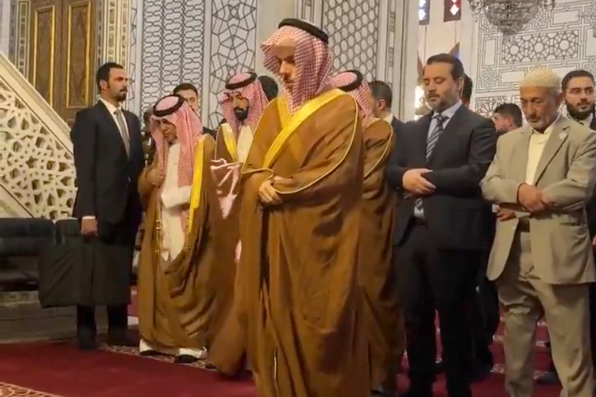 وفي زيارته الجديدة، التي استهلها بإمامة المصلين في المسجد الأموي، اصطحب بن فرحان وفداً اقتصادياً رفيع المستوى ضم المستشار بالديوان الملكي محمد التويجري، ونائب وزير المالية عبدالمحسن الخلف، ومساعد وزير الاستثمار عبدالله الدبيخي، ووكيل وزارة الخارجية لشؤون الاقتصاد والتنمية عبدالله بن زرعة، وعدداً من المسؤولين في مختلف القطاعات.