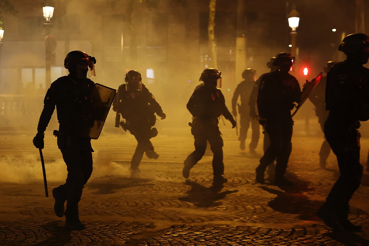 وقالت الشرطة في بيان «كان مثيرو الشغب في الشانزليزيه يسعون إلى إثارة حوادث واشتبكوا مراراً مع الشرطة بإلقاء ألعاب نارية كبيرة وأشياء أخرى».