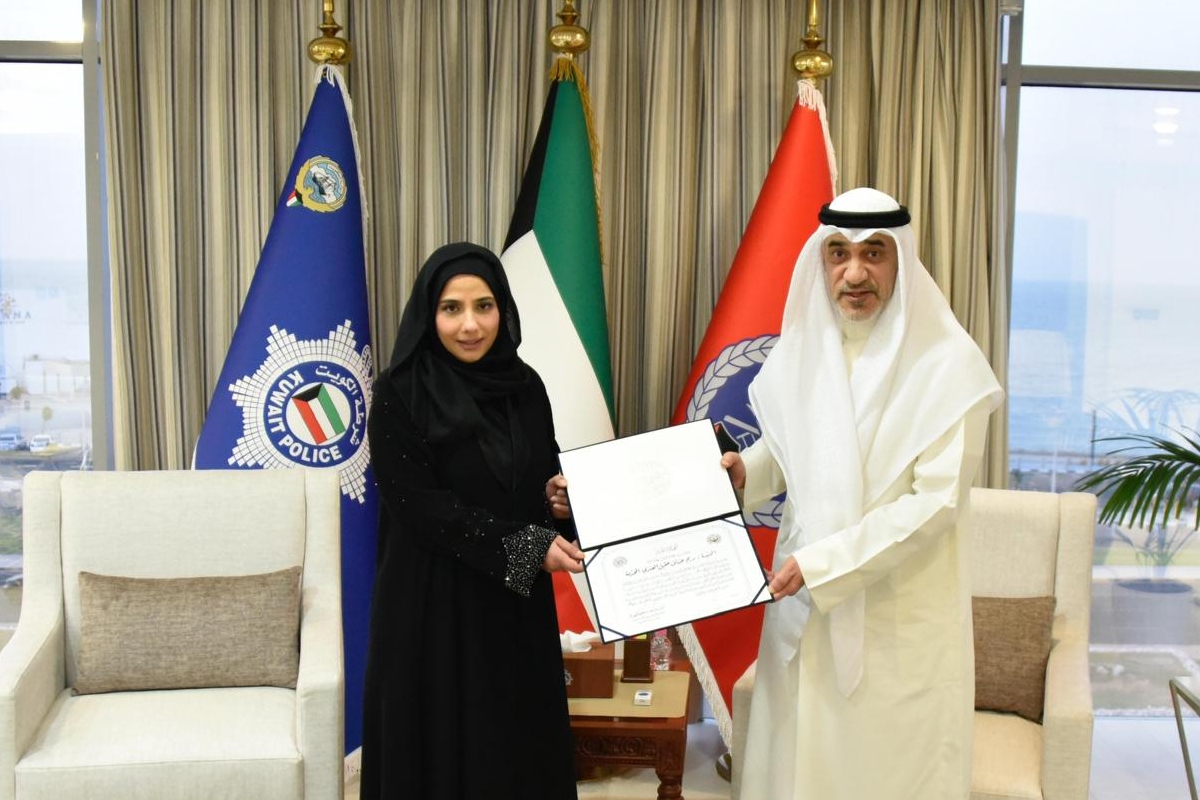 كرم النائب الأول لرئيس مجلس الوزراء ووزير الداخلية الشيخ فهد اليوسف ، ريم عساف العنزي، موظفة اختصاصي معلومات مدنية في إدارة السجل المدني - قسم المواطنين، وذلك تقديرًا لتفانيها وإخلاصها في أداء مهام عملها، وحرصها المستمر على تقديم أفضل الخدمات للمواطنين.
