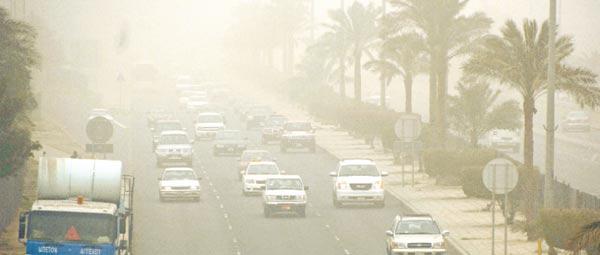 انخفضت أمس الرؤية، بسبب موجة الغبار التي تجتاح البلاد، بشكل سريع من 5 كيلو مترات الى أقل من نصف كيلومتر خلال 45 دقيقة، كما زادت سرعة الرياح بين 20 و30 كيلومترا في الساعة، مما تسبب في تعطل ثلاثة موانئ بحرية عن العمل، وعدم هبوط طائرتين في مطار الكويت الدولي.