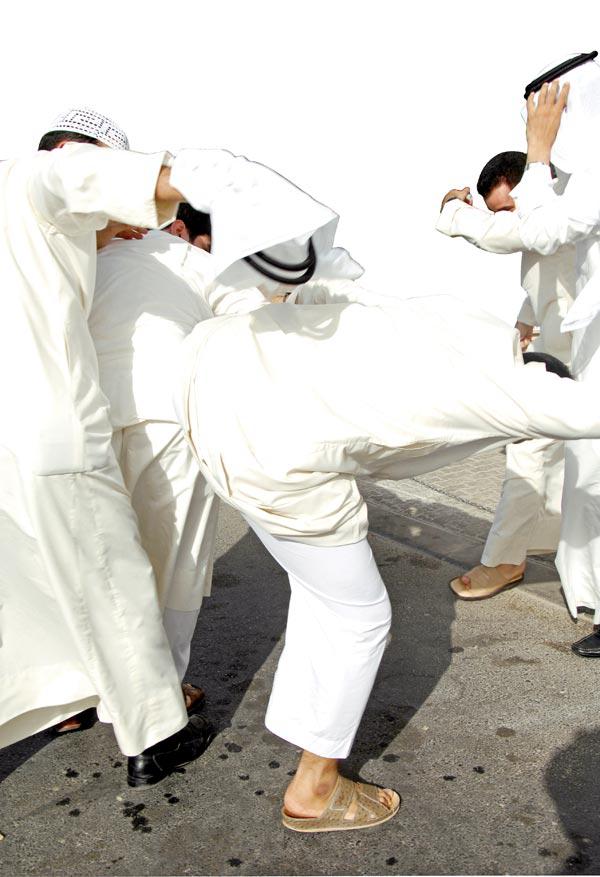 في حادثة أشبه بالاقتتال الحاصل في العراق الذي بات أمل إيقافه أمرا ليس سهلا، تستمر المشاجرات والعنف الطلابي داخل الحرم الجامعي ومن قبل القوائم الطلابية بالتحديد، ليصل العنف بالأمس إلى اقتتال طلابي بين أعضاء القائمتين الائتلافية والمستقلة أمام صالة التسجيل في جامعة الكويت بالشويخ، اذ تبادلوا فيه الضرب بالأيدي والالات الحادة حتى أصيب ثمانية طلاب بجروح مختلفة نقل بعضهم على إثرها إلى مستشفى الصباح، وقالت مصادر ان المصابين من القائمة الائتلافية خمسة طلاب، بينما أصيب من القائمة المستقلة ثلاثة. بدأت المسرحية الهزلية مع بداية تسجيل الطلبة المستجدين بصالة القبول منذ صباح امس، عندما بدأ الخلاف بتراشق كلامي بين القائمتين استكمالا للمشاجرة التي حصلت بينهما صباح امس الاول، والجميع يعلم ان الاتحاد الوطني لطلبة الكويت هو الممثل الرسمي لطلبة جامعة الكويت بقيادة القائمة « الائتلافية»، وبالاتفاق مع عمادة القبول والتسجيل يُسمح لعدد قليل من اعضاء الاتحاد الوطني الذين يقارب عددهم الـ15 بالدخول، إلا ان هذا العدد وصل الى 30 فردا، مع العلم بأن اعضاء الاتحاد الوطني لا يلتزمون بصفتهم اعضاء اتحاد بل يتصرفون على أنهم اعضاء قوائم طلابية، الامر الذي أغضب القوائم الطلابية الاخرى، اضافة الى ان اعضاء الاتحاد لا يفرقون بين الطلبة المستجدين واعضاء القوائم الاخرى ما أدى إلى اختلاق المشكلات بين القوائم، فقد حصلت امس معركتان امام وداخل صالة القبول والتسجيل كانت الاسلحة البيضاء الحاضرة فيهما، وجميع الطلبة رأوا ملابس المتعاركين ملطخة بالدماء، وكان كل ذلك على مرأى عين عميد شؤون الطلبة الدكتور فايز الكندري، الذي اضطر إلى فض الاشتباك بنفسه وتهدئة الوضع، وقد تحدث الى احد قياديي القائمة الائتلافية، وهو عضو في الاتحاد الوطني في الوقت نفسه، حيث بدأ بالنصح ومحاولة التهدئة، كما خرج من الصالة وذهب الى بعض قيادات القائمة المستقلة، حيث بدأ بتوجيه النصيحة لهم وتوضيح أن ما يحدث الان يسيء الى جامعة الكويت، طالبا من الطرفين التزام الهدوء. « الجريدة» من جانبها علمت ان مدير الأمن والسلامة حسن الربيعة اجتمع مع ممثلي كل من رئيس مجلس «الائتلافية» ونائب رئيس الاتحاد الوطني عبد العزيز الصقعبي والمنسق العام للقائمة المستقلة محمد المطوع الذين لبوا الدعوة في الوقت نفسه نية منهم في تصفية الأمور وفض الاشتباك. واتفق بعدها ممثلو القائمتين بعقد اجتماع مشترك هذا المساء للتفاهم بشكل ودي وخارج الأجواء الساخنة التي تمر بها الحركة الطلابية. الاتحاد الوطني فيما أكد رئيس الاتحاد الوطني للطلبة فرع جامعة الكويت معاذ الدويلة ان العنف ظاهرة دخيلة على الجامعة والمجتمع الكويتي وهو سلوك فردي لكنه يتزايد يومًا بعد يوم، ولذلك علينا التعاون جميعًا من أجل إيقافه، وانطلاقًا من واجبنا سنقوم خلال 48 ساعة برفع تصورنا لحل المشكلة إلى الإدارة الجامعية حتى نتعاون معها ومع الجميع من أجل إيقاف تلك الممارسات الشاذة والدخيلة، مبينًا ان ما يحدث ليس مسؤولية الاتحاد والإدارة فقط، بل إن القوائم الطلابية هي المسؤولة في المقام الأول، داعيًا كل القوائم إلى المساهمة في إيقاف العنف، وتقديم المبادرات الفردية والجماعية والتخلي عن كل أنواع العنف البدني واللفظي والفكري، فالعنف يضر الجميع وينفر الطلبة من الدخول في العمل النقابي أو الانتخابي رافضًا تشويه صورة اتحاد الطلبة من أي طرف كان، مشيرا إلى أن الاتحاد هو ممثل شرعي ووحيد لطلاب وطالبات الجامعة، وعلينا الحفاظ عليه كذلك دون المساس به من أي قائمة كانت، وأدعو «الائتلافية» و«المستقلة» كونهما أطراف أغلب المشاجرات الى عدم الزج باسم الاتحاد في أي مشاجرة أو اي تصرف قد يحصل من أحد أنصارهما. المستقلة تستنكر حيث استنكر في البداية منسق القائمة المستقلة محمد المطوع هذه التصرفات ووصفها بالصبيانية، رافضا إلصاق التهم بالقائمة المستقلة، داعيا إلى الحوار والتنافس الشريف بين كل القوائم الطلابية، م