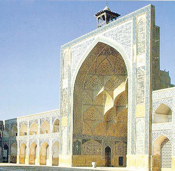 والمسجد الجامع في أصفهان أو مسجد الجمعة من أقدم المساجد الباقية في إقليم فارس وهو ينتمي بتصميمه إلى الطراز الثاني من طرز المساجد الجامعة والذي ظهر بعد طراز المساجد الجامعة ذات الصحن الأوسط والظلات الأربع، ويتميز هذا الطراز الذي تطور عن نظام المدارس ذات الإيوانات بالاعتماد على الصحن الأوسط مع إحلال الإيوانات ذات الأقبية مكان الظلات ذات البوائك.ورغم أن تاريخ تشييد جامع أصفهان لا يعرف على وجه اليقين إلا أنه من الثابت أنه بني في العصر العباسي في فترة سابقة على عصر دولة السلاجقة التي عني ملكها السلطان ملكشاه بترميم الجامع والإضافة إليه.يحتل جامع أصفهان مساحة مستطيلة طول ضلعها 170متراً والعرض 140متراً وهو بذلك من المساجد الكبيرة المساحة، وبوسط مساحة الجامع التي تقدر بنحو 23,800 متر مربع، صحن أوسط مكشوف (65م × 55م) وتحيط به الآن أربع مجموعات من المباني ويقع في كل محور من محاور الصحن إيوان له سقف من عقد مدبب ممتد (قبو طولي) ووراء الإيوان الجنوبي قبة بها المحراب الرئيسي للجامع وكذلك المنبر، ويفتح الإيوان الشمالي المقابل لإيوان القبلة من الجانبين على أروقة ذات أعمدة وعقود. وتعود الكتل المعمارية المحيطة بالصحن إلى فترات تاريخية مختلفة أضيفت معها إلى بناء الجامع الأصلي عدة قاعات وهى تقع بخاصة على حافات الصحن ويوجد خارج القاعات والإيوانات مساحات مسقوفة أو ظلات.وقد شيد جامع أصفهان في العصر العباسي باستخدام الطوب الأحمر (الآجر) غير أن بعض الإضافات استخدمت فيها الأحجار بالإضافة إلى الأعمال الزخرفية التي استخدمت بلاطات القاشاني فيها بإسراف فني ملحوظ.ويعود تاريخ بناء القبة الواقعة خلف إيوان القبلة إلى عهد السلطان السلجوقي ملكشاه (456هـ - 485هـ / 72-1092م) مع ملاحظة أن طريقة تحقيق الاتصال بين إيوان القبلة وهذه القبة لم تظهر في أي جامع آخر من هذا الطراز قبل عام 530هـ.ويعتقد علماء الآثار أن حدود المسجد العباسي القديم تعينها اليوم الجدران الخارجية للحوائط الخلفية للإيوانات الأربعة.ولجامع أصفهان ثلاث بوابات رئيسية إحداها في الجانب الشرقي والأخريان في الجانب الغربي، وفي ذلك مراعاة للتقاليد المعمارية التي رافقت تأسيس المساجد الأولى والتي تقضي بعدم فتح أي أبواب أو مداخل في جدار القبلة.ويعتبر جامع أصفهان أقدم مثال لطراز المساجد ذات الإيوانات في إيران إذ كانت مساجد إيران تشيد قبل ذلك وفقاً لطراز الصحن والظلات كما يتضح في مسجد دمغان الذي يرجع إلى القرن الثاني الهجري (8م) والذي يعد أقدم الآثار الإسلامية المعروفة في إيران وكذلك في جامع نايين الذي شيد في القرن الرابع الهجري (10م).
