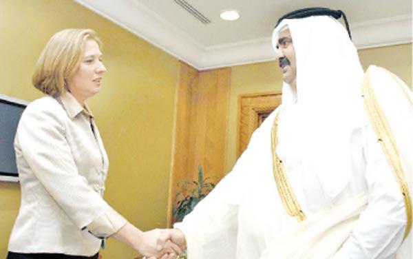 بينما سعت الى الحصول على دعم الدول العربية ضد مساعي ايران النووية، التقت وزيرة الخارجية الاسرائيلية تسيبي ليفني امس أمير قطر الشيخ حمد بن خليفة آل ثاني ورئيس مجلس الوزراء القطري وزير الخارجية حمد بن جاسم بن جبر آل ثاني.