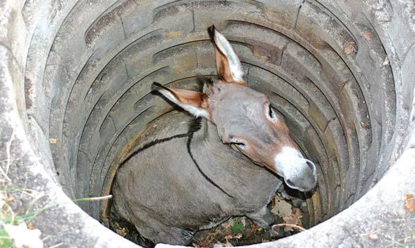 اعترف رجال دائرة الإطفاء بولاية مينيسوتا الأميركية أنهم أنقذوا في الماضي أبقاراً من بحيرات متجلدة، لكنها المرة الأولى التي ينقذون فيها حماراً وقع في بئر. واستخدم رجال دائرة الإطفاء في مدينة أندروود في ولاية مينيسوتا رافعة كبيرة وفككوا حجارة البئر حجراً حجرا لكي يتمكنوا من سحب الحيوان الذي علق داخل البئر. وذكرت صحيفة فيرغوس فالز دايلي جورنال أن بريان نيلسون انتبه إلى انتزاع بعض حجارة البئر فتوجه لمعاينة الأمر وشاهد الحمار داخل البئر فاتصل بجاره وارن غوندبرغ للاستفسار عما إذا كان أضاع حماره. وأشارت الصحيفة إلى أن غوندبرغ كان فقد حماره فعلاً في اليوم السابق. وبعد المعاناة التي تكبدها رجال الإطفاء لإنقاذ الحمار، بدا أن الحادثة لم تؤثر عليه إذ راح فور إنقاذه يقضم عشب الحقل القريب وكأن شيئاً لم يكن. وقال غوندبرغ للحمار مازحاً «لو بقيت في المنزل، لما كان حصل ما حصل».