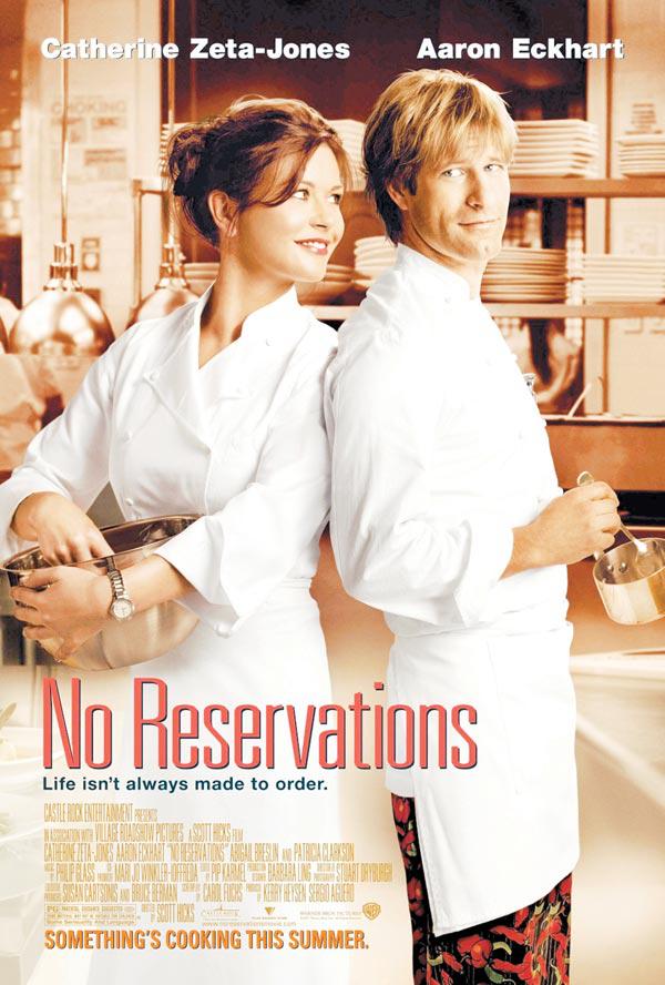 إنّه «فيلم طعام» (مثل الفيلم الكرتوني Ratatouille) إذ يتضمن مشاهد أكل تفتح شهيّة المشاهد. صحيح أن للطعام دوراً مهماً في فيلم Mostly Martha إلاّ أنّه ليس مهمًّا بذاته في الفيلم الجديد. إنّه جزء لا يتجزّأ من القصّة، لكنّ المخرج هيكس يفضّل إعطاء الأولويّة للأشخاص لا للطعام الذي يحضّرونه، رغم أنّهم غالبًا ما يعبرون من خلال الطعام لا من خلال الكلمات. تحظى كايت (كاثرين زيتا جونز)، رئيسة الطهاة في مطعم مشهور في مانهاتن، بإعجاب الجميع للأطباق التي تحضّرها. رغم أن صاحبة المطعم بولا (باتريسيا كلاركسون) إمرأة قاسية، إلا أنها تتحمّلها لكونها من أفضل طهاة الطبق الفرنسي في المدينة. ينقلب عالم كايت رأسًا على عقب لدى موت شقيقتها في حادث سيارة، تاركةً وراءها ابنتها زوي (أبيجايل بريسلن). كانت زوي وكايت أشبه بالزيت والماء. تتألم زوي لفقدان والدتها ولا تعلم كايت شيئًا عن كيفيّة التواصل مع الأولاد. تزداد الأمور سوءاً حين تستعين بولا بالطاهي الماهر نيك (أرون إيشكارت) الذي يقول إنّه قبل بهذه الوظيفة ليتمكّن من العمل مع كايت، بينما تعتقد هذه الأخيرة أنّه يريد الاستيلاء على وظيفتها. في حين كانت السكاكين تتطاير في المطبخ لمعت شرارة بين كايت ونيك.العلاقات التي يتمحور حولها الفيلم، ايّ العلاقة بين كايت وزوي وبين كايت ونيك، مبنيّة على أسس متينة. يحب المشاهد كلا ًّ من تلك الشخوص الثلاث ويتفهمها. نيك المرح يحمل السّعادة التي تشفي شخصين محبطين. الواضح أنّ زوي مجروحة في الصميم وحزينة لفقدان والدتها وكلّ ما ألفته في حياتها. في المقابل تبدو كايت غير عاطفيّة فعلاقتها العاطفيّة الأخيرة كانت قبل سنين ثم انشغلت بعملها الذي أصبح حياتها كلها. نجحت كاثرين زيتا جونز في إظهار حزن الشّخصيّة التي تؤدّي دورها، وأبيجايل صادقة في تمثيلها ويبدو أرون إكهارت قويًّا ومتعجرفًا في البدء لكنّه يضعف تدريجيًّا.من الأمور الممتعة في الفيلم جلسات العلاج التي تخضع لها كايت مع طبيبها النفسي (يؤدّي دوره بوب بالابان) - وُجدت الفكرة في فيلم Mostly Martha. أمضت كايت ساعات مع الطبيب النفسي لا للتحدث عن نفسها بل عن وصفات الطعام وانتقاد المأكولات الجديدة. ممتعة مشاهدة المعالج النفسي يسأل كايت عن حياتها العاطفية فيما يتذوّق مأكولاتها ويكاد يتأوّه إعجاباً بطعمها ومكوّناتها.يغيب جزء من القصّة وقد ألغي في المونتاج أو لم يكن موجوداً في السيناريو أصلاً. كان شون (براين ف. أوبايرن) جار كايت في الطابق السفلي يهتمّ بها ويساعدها وسيؤثّر ذلك على مجريات الفيلم. No Reservations فيلم مؤثّر، إنما قد لا نقع على مشاهدين مهتمّين بقصّة الحب التي تدور حول كايت ونيك أكثر منها بقصة الفتاة التي فقدت أمّها. صحيح أن الفيلم ليس كلاسيكيًّا معاصرًا، لكنه مسلٍّ لمن قرّر مشاهدته.