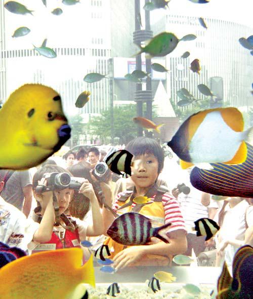 اطفال يصورون اسماك استوائية في حوض اوكيناوا الذي يحتوي على حوالي 1500 سمكة ملونة امس في اليابان (أ ف ب) نشر في 30-07-2007 | 00:00 آخر تحديث 30-07-2007 | 00:00