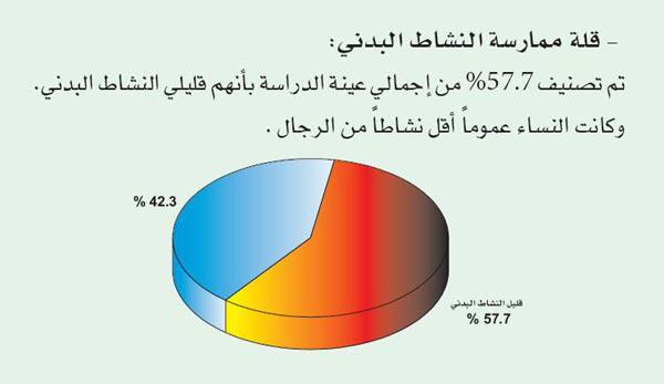 الضغط والكوليسترول والسكري للرجال... والبدانة وقلة النشاط للنساء.