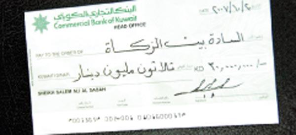 بيت الزكاة يتسلم 30 مليون دينار من تبرع الشيخ سالم العلي تمثل باقي قيمة التبرع البالغ 100 مليون