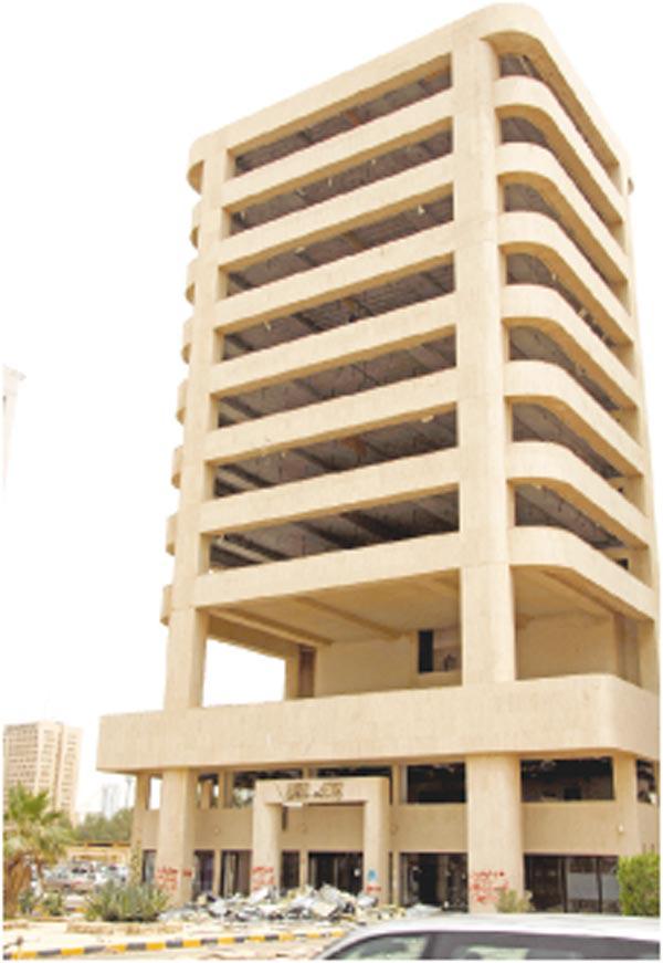صورتان لمبنى وزارة التعليم العالي، قبل... وبعد انهياره أمس أثناء عملية إزالته، عندما فوجئ العاملون بالمبنى يتداعى أمامهم ويسقط كلياً، ولم يقع ضحايا بين العاملين، وكانت الأضرار مادية فقط. (تصوير هاني عبدالله)
