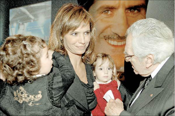 أحيت جريدة النهار اللبنانية أمس الذكرى الثانية لاغتيال النائب والصحافي جبران تويني في احتفال اقيم في مجمع بيال في وسط بيروت تخلله منح «جائزة جبران تويني الدولية السنوية» الثانية. وفي الصورة أرملة جبران سهام عسيلي وابنتاه ووالده النائب غسان تويني في «البيال» أمس. (وائل حمزة)