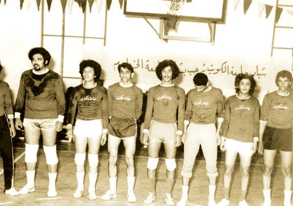ويظهر في الصورة الأولى فريق طالبات جامعة الكويت لكرة الطائرة عام 1972م في احدى ارقى المنشآت الجامعية الكويتية في ذاك الوقت، أما الصورة الثانية فهي لمنتخب جامعة الكويت التقطت عام 1969م.