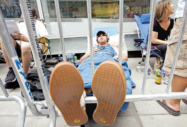 اصطف المئات من المولعين بالتكنولوجيا، ليكونوا اول المشترين لتليفون آي فون المحمول الذي تنتجه «آبّل انكوربوريشن»، والذي من المتوقع ان يغير شكل صناعة الهواتف المحمولة.