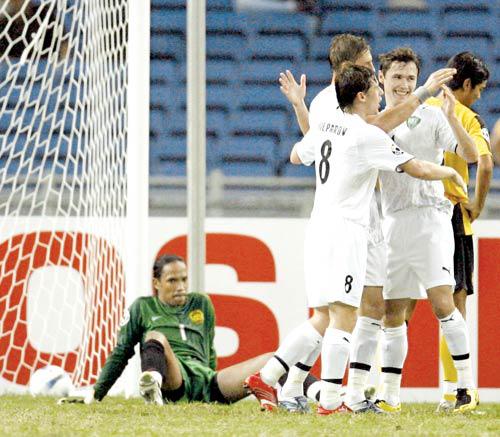 كانت المباراة تسير نحو التعادل 1/1 قبل ان يسجل الحارثي بديل ياسر القحطاني هدف الفوز في الوقت بدل الضائع. وتبادل المنتخبان المحاولات في الدقائق الاولى، ثم نجح كل منهما في هز الشباك، فبدأ السعودي اولا ثم ادرك الاندونيسي التعادل. في المقابل، كان المنتخب الاندونيسي الطرف الاخطر، فلم يعر اهتماما كثيرا للتحكم بالكرة والسيطرة على المجريات بقدر النجاح في الوصول الى المنطقة السعودية وكان يفعل ذلك في تمريرتين او ثلاث، وغالبا ما كانت كراته خطرة على مرمى الحارس ياسر المسيليم وخصوصا العرضية منها. وجاء هدف السعودية من كرة متقنة رفعها احمد البحري من الجهة اليمنى وطار لها القحطاني فوق المدافعين واضعا الكرة برأسه في الزاوية اليمنى للمرمى (14)، وادركت اندونيسيا التعادل عندما فشل اسامة الهوساوي في تشتيت الكرة جيدا فارتدت الى ايبوي الذي عوض اهداره فرصة ثمينة قبل دقائق، فاخترق المنطقة وتجاوز الحارس المسيليم الذي خرج للتصدي له ثم وضع الكرة في الشباك (20). وسيطر المنتخب السعودي على المجريات دقائق بعد الهدفين، لكن لاعبيه اكثروا التمريرات في وسط الميدان وافتقدوا طريقهم نحو المرمى في محاولاتهم فغابت الخطورة باستثناء كرة للقحطاني من حدود المنطقة على يمين المرمى مباشرة (30). وجاء هدف الحارثي الذي اذهل الاندونيسيين بعد ان كانوا على مشارف التأهل الى ربع النهائي، فمن ركلة حرة على حدود المنطقة من الجهة اليمنى، رفع عبده عطيف الكرة امام المرمى فارتقى لها الحارثي فوق الجميع وأودعها برأسه ببراعة داخل الشباك. أوزبكستان تكتسح ماليزيا بخماسية نظيفة سحق المنتخب الأوزبكستاني نظيره الماليزي بخماسية نظيفة في المباراة التي اقيمت بينهما على ملعب بخيت جليل في كوالالمبور ضمن الجولة الثانية من منافسات المجموعة الرابعة من بطولة كأس آسيا 2007 في كرة القدم. وسجل ماكسيم شاتسكيخ (10 و89) وتيمور كابادزي (30) واولوغبيك باكايف (45 من ركلة جزاء) وعزيز ايبراغيموف (84) الاهداف. واثبت المنتخب الماليزي وهو احد اربعة منتخبات مضيفة لهذه النهائيات، أنه جسر تعبر عليه المنتخبات الاخرى بدليل خسارته المباراة الاولى امام الصين 1-5 ايضا. وشهدت المباراة كما تدل نتيجتها سيطرة مطلقة لاوزبكستان في مواجهة منتخب ارتكب اخطاء صبيانية كما فعل في المباراة الاولى ضد الصين، ليؤكد انه اضعف المنتخبات المشاركة في هذه البطولة علما بانه يدين بمشاركته الى كونه احدى الدول المضيفة. نجح شاتسكيخ في افتتاح التسجيل عندما وصلته الكرة من ركلة ركنية رفعها سيرفر دجيباروف وتابعها الاول من مسافة قريبة برأسه داخل الشباك (10). وأثمرت السيطرة الاوزبكستانية المستمرة هدفا ثانيا بعد مجهود فردي رائع لتيمور كابادزي الذي تخطى ثلاثة مدافعين واطلق كرة قوية بيسراه عانقت الشباك الماليزية (30). وفي الوقت بدل الضائع من الشوط الاول اعاق الحارس الماليزي المهاجم اولوغبيك باكايف المنفرد به فلم يتردد الحكم القطري عبد الرحمن عيده في احتساب ركلة جزاء ترجمها بنجاح اللاعب نفسه الذي ارتكبت بحقه المخالفة (45). و نجح المنتخب الاوزبكي في اضافة الهدف الرابع عندما مرر سولومين كرة عرضية باتجاه ايبراغيموف ليتابعها الاخير داخل الشباك (84). وكان ختامها مسك لان اوزبكستان سجلت اروع اهداف المباراة بعد تبادل اربعة لاعبين الكرة بسرعة فائقة قبل ان يختتم شاتسكيخ الهجمة بكرة داخل الشباك مسجلا الهدف الخامس لفريقه والثاني الشخصي له رافعا رصيده الى 21 هدفا في 32 مباراة دولية (89). لقاء قمة ثأري بين إيران والصين تلتقي الصين وإيران في مباراة قمة اليوم في كوالالمبور في الجولة الثانية من منافسات المجموعة الثالثة من بطولة كأس آسيا 2007 لكرة القدم. ويعتبر اللقاء ثأريا لان الصين تخطت ايران بركلات الترجيح 4-3 في نصف نهائي البطولة الاخيرة التي استضافتها الصين لتبلغ المباراة النهائية قبل ان تخسر امام اليابان 1-3، في حين اكتفى المنتخب الايراني بالمركز الثالث بفوزه على البحرين 4-2. ويدرك المنتخبان ان الفائز سيضمن بل