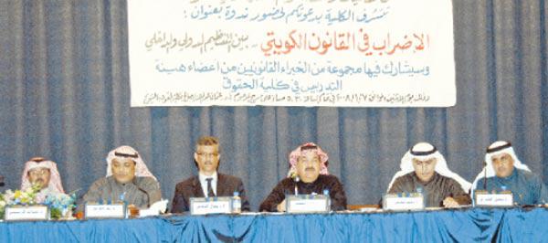 أكد مجموعة من أساتذة القانون في جامعة الكويت أن المشرع الكويتي غفل عن أهمية إقرار حق الإضراب كحق من حقوق العمال عند وضع الدستور، مطالبين بإقراره حقا مكتسبا كما هي الحال في الاعتصامات.