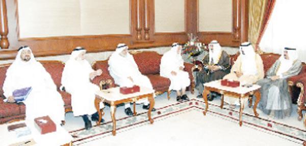 كما استقبل سموه رئيس مجلس ادارة شركة المشروعات السياحية الشيخ دعيج خليفة المالك الصباح، ونائب رئيس مجلس ادارة شركة المشروعات السياحية والعضو المنتدب خالد عبدالله الغانم، ومدير مكتب المشاريع بشركة المشروعات السياحية محمد عبدالله المحيلان، حيث استمع سموه لعرض عن ثلاث مخططات لمشاريع تعتزم الشركة تنفيذها، تتعلق بتوسعة مراسي الخيران وشاطئ العقيلة، بالاضافة الى انشاء ناد جديد لليخوت.