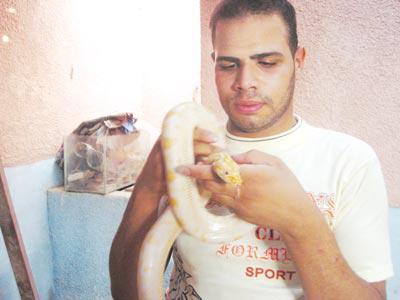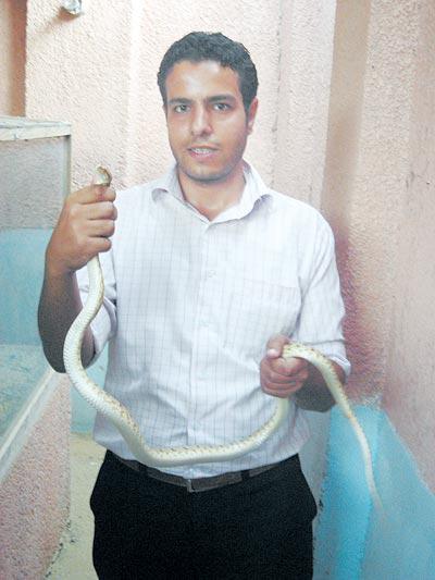 «التعامل مع الثعابين أسهل ما يمكن». هكذا بدأ الحاج نصر طلبة عميد العائلة حديثه عن الثعابين التي يرافقها منذ طفولته ويعتمد على صيدها وتربيتها كمصدر رزق لعائلته. قطن أجداده القدامى أولاد طلبة قرية «أبو رواش» وهي جزيرة قديمة كان اسمها «أبو رواس» (اسم فرعوني قديم يعني القرية الساحلية) وكانوا يتركون جزيرتهم قاصدين هضبة الهرم لصيد الثعابين والغزلان لأكلها. بقي هذا الوضع حتى افتتحت جامعة فؤاد الأول، في القاهرة اليوم، وتضمنت الكليات العلمية التي يعتمد أساتذتها في إجراء بعض تجاربهم على الزواحف والحيوانات البرية التي يصطادها أهل القرية. عندئذ أصبح صيد الثعابين مصدراً لرزقهم حتى بداية الستينات عندما التقى نصر طلبة بالأميركي يوفال، الدكتور المتخصص في دراسة علم الحيوان فنصحه بتربية الثعابين وتصديرها والإفادة منها بشكل أكبر واتفقا على صفقة مفادها أن يرسل نصر عينة هي عبارة عن عدة ثعابين إلى يوفال لقاء مبلغ قدره 50 دولاراً أميركياً. بالفعل، أرسلت الثعابين في الموعد المحدد. إلا أن يوفال دفع ثمنها 3000 دولار. دخل نصر عالم تجارة الثعابين والحيوانات البرية وأقام عدة معارض عالمية في إيطاليا وفرنسا والإمارات وعمان. اليوم يتخذ من مدينتي الغردقة وشرم الشيخ مقراً دائماً لمعارضه.تعلّم طلبة من الكثير من الثعابين، يقول: «كل ثعبان أصطاده يعلمني كيف أصطاد الثعبان التالي. تعلمت أيضاً أنه لا غرور مع الثعابين وأن من الضروري الاحتراس منها في كل الأوقات». يروي طلبة أنه كان ذات يوم وابن عمه في مدينة كوم حمادة في محافظة البحيرة وكانا يصطادان الحية القرعاء. وجد أثرها على الأرض وسار خلفه حتى عثر على جحر فأر فوضع يده فيه باحثاً عن أي ثعبان فلدغته الحية القرعاء في إصبعه وحين صرخ أسرع إلى جرح إصبعه بسكين حتى كادت تنفصل العقدة الأولى نهائياً، ثم حملوه إلى الطبيب الذي أجرى له عملية جراحية.انواعها عن أنواع الثعابين يقول طلبة: «هناك 36 نوعاً في مصر وحدها، منها 10 أنواع سامة و26 غير سامة. ينقسم السام إلى عائلتين: عائلة الكوبرا وعائلة الحيات. تنقسم عائلة الكوبرا أربعة: الكوبرا المصرية الموجودة في البحيرة وبني سويف وقد يصل وزنها إلى 5 كيلوغرام وهي أطول ثعبان في مصر يصل طولها إلى مترين. الكوبرا البخاخ في أسيوط وقنا ويصل وزنها إلى كيلوغرام ولا يزيد طولها على 180 سنتيمتراً. الكوبرا البرجيل وموطنها شمال سيناء ومرسى مطروح ويصل وزنها إلى كيلو ونصف كيلوغرام وطولها إلى متر ونصف متر. الكوبرا الإنكليزية وهي سوداء اللون جاءت في صناديق الاحتلال الإنكليزي واستوطنت في الإسكندرية ومرسى مطروح ويصل طولها إلى متر ونصف متر ووزنها قد يصل إلى كيلوغرام ونصف كيلوغرام.أما العائلة الثانية وهي عائلة الحيات فتشمل ستة أنواع: الحية المقرنة ولا يزيد طولها على 60 سم ووزنها على 250 غراماً. الحية القرعاء لا تزيد على 25 سم ويتراوح وزنها بين 50 إلى 100 غرام. الحية الفرعية الحمراء والغريبة السوداء هما أخطر أنواع الحيات ويتراوح طولهما بين 20 و 60 سم ويصل وزنهما إلى 200 غرام. الحية الكاذبة وسميت كذلك إذ تنفث سُمَّا بطيئا ويصل وزنها إلى 250 غراماً وطولها إلى 70 سم. الحية الفارغة وهي غير سامة ومن الأنواع النادرة في مصر. يشير طلبة إلى أن عائلة الثعابين المصرية تتضمن الثعبان الأرقم الأحمر وهو غير سام ويوجد في صحارى مصر ويتراوح وزنه بين 250 و 500 غرام وطوله 1.70سم والثعبان الجداري، يعيش في جدران البيوت القديمة ويصل طوله إلى متر ونصف متر ويزن 200 غرام والأزرود الجبلي يتميّز بلونه الأصفر كلون الرمال ويعيش في الصحراء وهو غير سام والأزرود البيتي وهو موجود في المناطق الزراعية والريف ولونه أسود وثعبان البسباس وسمي بالبرنس لأنه يحمل تاجاً على رأسه وهو غير مؤذ يعيش في سيناء، يبلغ طوله 30 سم ووزنه 50 غراماً و ثعبان الوليد الأسود ويصل طوله إلى متر ونصف متر ووزنه إلى كيلو ونصف كيلو ويتميز بسرعته.لكن أخطر أنواع الثعابين عالمياً ـ بالنسبة لنصر طلبة ـ هي الحية ذات الجرس الأميركي