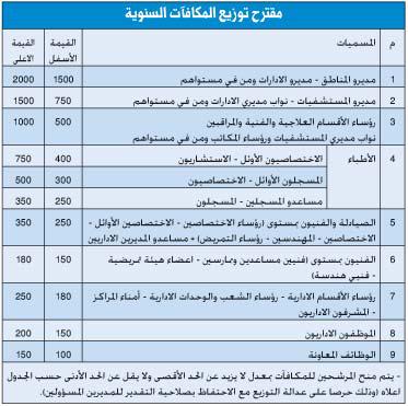 أصدر وكيل وزارة الصحة د. عيسى الخليفة قرارا يقضي بإعادة تشكيل اللجنة الدائمة المكلفة بمتابعة شؤون العاملين المكلفين بالعمل أيام راحة السبت.وحدد القرار مهام اللجنة الجديدة، وأوضح ان لها ان تطلب الاعتمادات المالية اللازمة لمكافآت العاملين المكلفين بالعمل ايام الراحة من ديوان الخدمة المدنية، بعد حصر اعداد الموظفين المكلفين، بالتعاون مع المناطق الصحية المعنية. وطلب القرار من اللجنة حصر كشوف صرف المكافآت المالية المستحقة للقائمين بالعمل وإرسالها لإدارة المحاسبة المالية في المواعيد المحددة.كما اصدر وكيل وزارة الصحة قرارا بعدم نقل العاملين في الوظائف الفنية في مجال التغذية بكافة فئاتهم من المستشفيات الا بعد الرجوع الى ادارة التغذية في الوزارة.من جانب آخر، حصلت «الجريدة» على مقترح توزيع المكافآت السنوية للأعمال الممتازة وخصص المقترح مبلغ من 1500 إلى 2000 دينار لمديري المناطق الصحية ومديري الادارات، بينما حدد من 750 الى 1500 دينار لمديري المستشفيات ونواب مديري الادارات .واشار القرار المقترح الى منح رؤساء الاقسام العلاجية والفنية والمراقبين ونواب مديري المستشفيات ورؤساء المكاتب من 500 الى 1000دينار ، فيما حدد من 750 الى 250 دينارا للاطباء والصيادلة والهيئة التمريضية.