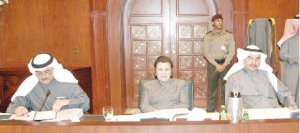 عقد مجلس الوزراء اجتماعه صباح امس فى قصر السيف برئاسة سمو رئيس مجلس الوزراء الشيخ ناصر المحمد.وصرح نائب رئيس مجلس الوزراء وزير الدولة لشؤون مجلس الوزراء فيصل الحجي عقب الاجتماع انه بمناسبة الذكرى الثانية لرحيل المغفور له باذن الله تعالى سمو أمير البلاد الراحل الشيخ جابر الاحمد الجابر الصباح -رحمه الله رحمة واسعة واسكنه فسيح جناته «وهو لايزال ملء السمع والبصر وحيا في قلوب ابناء وطنه وامته وهو الذي عزز سيادة دولة الكويت وحرص على المحافظه على امنها واستقرارها ورفعة شأنها ومد يد العون للجميع من دون تفريق نسأله تعالى ان يرحم جابر الخير ويتغمده برضوانه مع الابرار الصالحين في جنات النعيم وان يمد في عمر اميرنا وقائد مسيرتنا سمو الامير الشيخ صباح الاحمد ويسبغ عليه اثواب الصحة والعافيه لمواصلة مسيرة عطائه المخلص من اجل خدمة الوطن والمواطنين، كما يتوجه مجلس الوزراء الى الباري عز وجل ان ينعم على سمو الامير الوالد الشيخ سعد العبدالله السالم الصباح بالصحة الوافرة والعمر المديد، وان يحفظ بعنايته سمو ولي العهد الشيخ نواف الاحمد الجابر الصباح حفظه الله وان يمدهم جميعا بعونه وتوفيقه لكل مافيه تقدم الكويت وازدهارها وخدمة اهلها الاوفياء».ثم اطلع المجلس على الرسالة الموجهة الى سمو الامير من الرئيس محمود احمدي نجاد رئيس الجمهورية الاسلامية الايرانية التي تعلقت بتعزيز اواصر التعاون بين الجمهورية الاسلامية الايرانية ودول مجلس التعاون لدول الخليج العربية وبالعلاقات الثنائية بين البلدين الصديقين فى كل المجالات والميادين.كما اطلع المجلس كذلك على الرسالة التي تلقاها سمو الامير من الامين العام لمنظمة المؤتمر الاسلامي البروفسور اكمل الدين احسان اوغلي والمتضمنة الدعوة لحضور الدورة الحادية عشرة لمؤتمر القمة الاسلامي والمقرر عقدها في جمهورية السنغال في مارس المقبل. وقال الحجي ان المجلس استمع الى شرح مفصل من وزير المالية مصطفى جاسم الشمالي ومن القياديين في وزارة المالية اوضحوا فيه الملامح الرئيسية لمشروع ميزانية السنة المالية 2008/2009 والتي تم خلالها دراسة واعداد تقديرات الايرادات وجميع ابواب المصروفات للمرة الاولى بقطاع شؤون الميزانية العامة بوزارة المالية تفعيلا لمبدأ توحيد وظائف في وزارة المالية مما ساعد على تكامل الدراسة وربط ابواب المصروفات بعضها ببعض والذي انعكس ايجابيا على دقة التقديرات، كما اوضحوا للمجلس الاساس المعتمد لاعداد تقديرات الايرادات النفطية وما تقرر بشأن سداد العجز الاكتواري بصندوق الباب الثالث بقانون التأمينات الاجتماعية اعتبارا من ميزانية السنة المالية 2008/2009 على قسطين متساويين، وذلك ضمن اطار السياسات العامة بالاستغلال الامثل للفوائض المالية الناتجة عن الارتفاع القياسي لاسعار النفط بالاسواق العالمية، كما استعرض المجلس الارقام والبيانات والتفاصيل المتعلقة بتقديرات الايرادات والمصروفات والالتزامات والعجز فى ميزانية السنة المالية 2008/2009 وقد قرر المجلس الموافقة على مشروع قانون بربط ميزانية الوزارات والادارات الحكومية للسنة المالية 2008/2009 ورفعه الى سمو الامير، واعرب المجلس عن تقديره وثنائه للجهود الكبيرة التي بذلها وزير المالية والعاملون في وزارة المالية والجهات المعنية الاخرى لاعداد مشروع الميزانية، مؤكدا اهمية تجسيد التعاون المطلوب من الجميع من اجل تحقيق الاهداف الوطنية المنشودة.كما بحث المجلس شؤون مجلس الامة، واطلع بهذا الصدد على الاسئلة والاقتراحات برغبة المقدمة من بعض الاعضاء وكذلك الموضوعات المدرجه على جدول اعمال جلسة مجلس الامة.وقال الحجي ان المجلس بحث الشؤون السياسية في ضوء التقارير المتعلقة بمجمل التطورات الراهنة على الساحة السياسية على الصعيدين العربي والدولي.وفي متابعته للاوضاع الخطيرة التي تشهدها الاراضي الفسطينية، عبر المجلس عن ادانة وتنديد دولة الكويت الشديدين للعدوان الاسرائيلي الوحشي والمتصاعد على قطاع غزة، و