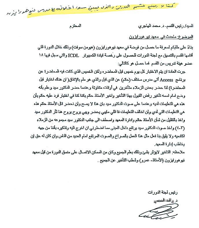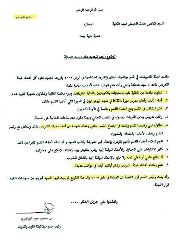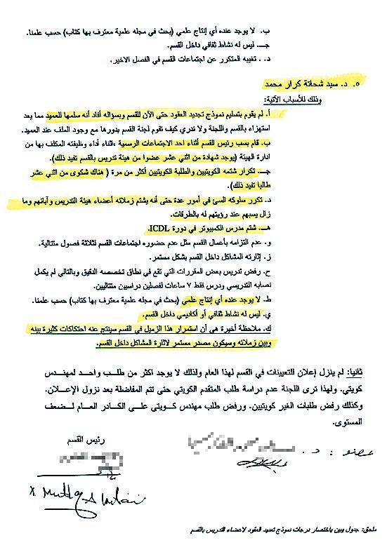 مدير العلاقات العامة ومسؤولو الهيئة على علم ولم يتخذوا إجراء بحقهمدير عام الهيئة العامة للتعليم التطبيقي والتدريب وعميد التكنولوجيا يعيدون تعيين أحد الاساتذة الوافدين في عمله على الرغم من وجود توصيات تثبت انه غير مناسب للتدريس لتكرر شتمه الطلبة والكويت إضافة إلى الكتاب الصادر من إدارة التعيينات الذي يدينه شخصيا