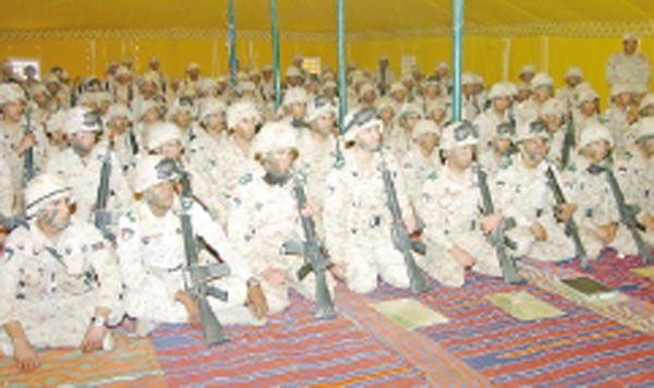 بعدها قامت مجموعة قيادة التمرين (من الطلبة الضباط) بتمثيل الأدوار القيادية للمشروع حيث قام قائد مجموعة القتال بتمرير الأوامر الى القيادات الدنيا مستخدما الطاولة الرملية التي تمثل مسرح عمليات المعركة للتأكد من فهم الجميع لمجريات الأحداث والمهام، و قد مثل القيادات الدنيا مجموعة من الطلبة الضباط . بعدها قام رئيس الأركان بإعطاء توجيهاته ومن ثم توجه الحضور الى موقع التمرين. لم يمنع سوء الأحوال الجوية مجموعات القتال من تنفيذ مهامها، فبدأ التمرين بعملية هجوم مدبر وانتهى باحتلال الهدف وأثبتوا جدارتهم بتطبيق ما تعلموه في فصول الدراسة بالكلية، و قد شاركت سرية التطبيق وسرية المدرعات وفصيل الدبابات من القوة البرية، ومجموعة من طائرات القوة الجوية في التمرين الذي انتهى بنجاح.نال الأداء المميز للطلبة الضباط إعجاب الحضور، وقام رئيس الأركان العامة للجيش بتوجيه كلمة إليهم قال فيها «إن جهود مدربيكم واضحة من خلال ما ترجمتموه من أداء فعال وتطبيق ناجح للدروس التي تلقيتموها، وما شاهدناه اليوم أكد لنا أنكم قد استوعبتم المواد النظرية وتميزتم بتطبيقها ميدانيا»، واوضح في كلمته أن «الجيش الكويتي سخر كل إمكانات التعليم والتدريب لكم، و ما تم تسخيره تم استثماره استثمارا طيبا، وقد تحملتم سوء الأحوال الجوية في تدريباتكم الميدانية وهذه طبيعة بلدنا، كما أن اخوانكم في القوة البرية قد قطعوا شوطا كبيرا في التمارين العسكرية وتعايشوا مع أسوأ الاحوال الجوية التي تؤثر على الانسان قبل الآلة»، ودعاهم إلى أن يكونوا «أسوة حسنة في سبيل أداء العمل المتكامل للذود عن الوطن ومثالا للانضباط والعمل الجاد»،وأشار إلى أننا خلال هذه الأيام نحتفل بالعيد الوطني وعيد التحرير ووجه التهنئة إلى سمو القائد الاعلى للقوات المسلحة الشيخ صباح، وولي عهده الامين ورئيس مجلس الوزراء، كما نقل لهم تحيات وتمنيات رئيس مجلس الوزراء بالإنابة ووزير الدفاع الشيخ جابر المبارك.