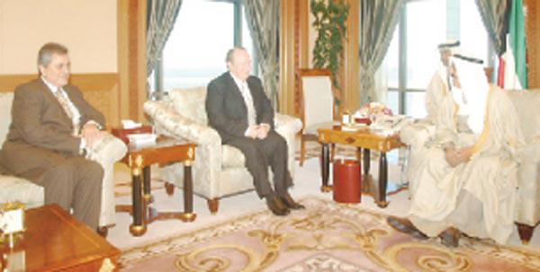 واستقبل سمو الامير بقصر السيف أمس بحضور سمو ولي العهد رئيس مجلس الامة جاسم محمد الخرافي يرافقه رئيس مجلس الشعب في الجمهورية العربية السورية محمود الأبرش والوفد المرافق له، وذلك بمناسبة زيارته للبلاد. وقد حضر المقابلة نائب وزير شؤون الديوان الأميري الشيخ علي الجراح وعضو لجنة الصداقة البرلمانية الكويتية السورية النائب مرزوق الحبيني ومدير مكتب سمو امير البلاد احمد الفهد.كما استقبل سموه بحضور سمو ولي العهد الشيخ نواف الأحمد محافظ الأحمدي الشيخ الدكتور ابراهيم الدعيج يرافقه عمدة مدينة تيرانا الألبانية ايدي راما والوفد المرافق له، وذلك بمناسبة زيارته للبلاد. هذا، وقد قدم لسموه ولسمو ولي العهد هدايا تذكارية، وقد حضر المقابلة نائب وزير شؤون الديوان الأميري الشيخ على الجراح ومدير مكتب سمو أمير البلاد أحمد الفهد، والمستشار بالديوان الأميري محمد أبوالحسن.واستقبل سموه النائب الأول لرئيس مجلس الوزراء وزير الدفاع الشيخ جابر المبارك، ووزير الدفاع في الجمهورية الإسلامية الموريتانية محمد محمود ولد محمد الامين، حيث سلم لسموه رسالة خطية من رئيس الجمهورية الإسلامية الموريتانية سيدي ولد الشيخ عبدالله، تتعلق بالعلاقات الأخوية الطيبة التي تربط البلدين والشعبين الشقيقين وسبل تعزيزها في المجالات كافة، كما تضمنت دعوة لسموه لزيارة موريتانيا، وقد أعرب سموه عن سعادته بتلبية الدعوة. حضر المقابلة نائب وزير شؤون الديوان الأميري الشيخ علي الجراح ومدير مكتب سمو أمير البلاد أحمد الفهد.