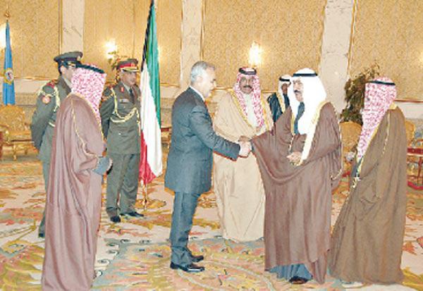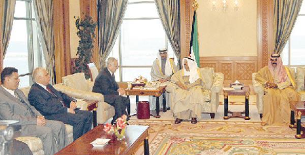 استقبل سمو أمير البلاد الشيخ صباح الأحمد بقصر السيف صباح امس سمو ولي العهد الشيخ نواف الأحمد يرافقه طارق الهاشمي نائب رئيس جمهورية العراق الشقيقة، وذلك بمناسبة زيارته إلى البلاد. وقد أكد سموه على ثبات موقف دولة الكويت في مساندة جمهورية العراق الشقيقة في عملية إعادة الإعمار وبناء مؤسساته الوطنية ودعم كل الجهود الرامية الى تعزيز أمن العراق الشقيق واستقراره. وقد حضر المقابلة نائب وزير شؤون الديوان الاميري الشيخ علي جراح الصباح ومدير مكتب سمو أمير البلاد أحمد فهد الفهد ورئيس المراسم والتشريفات الاميرية الشيخ خالد العبدالله والمستشار بديوان سمو ولي العهد الدكتور حمود محمد العتيبي ووكيل ديوان سمو ولي العهد الشيخ مبارك الفيصل الصباح.وأقام سمو ولي العهد الشيخ نواف الأحمد مأدبة غداء بقصر بيان على شرف الهاشمي والوفد المرافق له وذلك بمناسبة زيارته الرسمية للبلاد.وكان نائب رئيس الجمهورية العراقية طارق الهاشمي وصل إلى البلاد امس والوفد المرافق له في زيارة رسمية للبلاد تستغرق ثلاثة ايام يجري خلالها مباحثات رسمية مع القيادة السياسية تتعلق بتعزيز العلاقات الثنائية المتبادلة بين البلدين وسبل دعمها، كما تتناول الاوضاع الراهنة في العراق ومستجدات المنطقة. وكان في مقدمة مستقبليه على أرض المطار سمو ولي العهد الشيخ نواف الأحمد، وسمو رئيس مجلس الوزراء الشيخ ناصر المحمد، والنائب الأول لرئيس مجلس الوزراء وزير الدفاع الشيخ جابر المبارك، ونائب رئيس الحرس الوطني الشيخ مشعل الأحمد، والوزراء والمحافظون والمستشار بديوان سمو ولي العهد رئيس بعثة الشرف المرافقة الدكتور حمود محمد العتيبي، وكبار المسؤولين بالدولة.