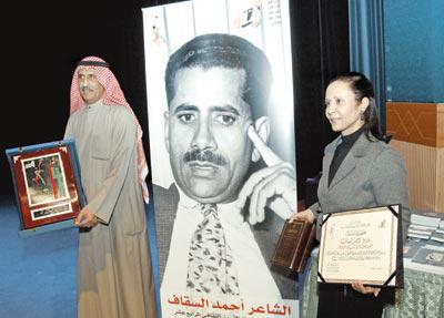 احتضن مسرح متحف الكويت الوطني، مساء أمس الأول احتفالاً لتكريم شخصية مهرجان القرين الثقافي الشاعر أحمد السقاف، حضره أمين عام المجلس الوطني للثقافة والفنون والآداب بدر الرفاعي، وعدد من المثقفين والأدباء، بالإضافة إلى أبناء الشاعر.