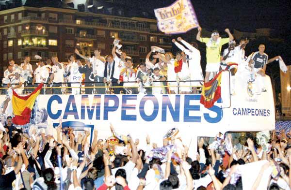 وخاض ريال مدريد المرحلة الاخيرة أمس الاول، وهو على قمة جدول المسابقة برصيد 73 نقطة، بفارق نتيجة المواجهة المباشرة فقط أمام برشلونة، بعد أن أحرز ريال مدريد أربع نقاط من مباراتيه أمام برشلونة في الدوري هذا الموسم مقابل نقطة وحيدة نالها برشلونة. وكان ريال مدريد في حاجة إلى الفوز فقط ليضمن اللقب بغض النظر عن نتيجة برشلونة مع خيمناستيكا، وتحقق له ما أراد حيث أنهى مسيرته في المسابقة برصيد 76 نقطة في الصدارة، وبفارق نتيجة المواجهة المباشرة فقط أمام برشلونة. أما فريق اشبيلية فسقط في فخ الهزيمة على ملعبه أمام فياريال، ليتجمد رصيده عند 71 نقطة في المركز الثالث. ولحق سلتا فيغو وريال سوسيداد بفريق خيمناستيكا تاراغونا، في قافلة الهابطين إلى دوري الدرجة الثانية باسبانيا، رغم فوز سلتا على خيتافي 2-1 وتعادل سوسيداد مع فالينسيا 3-3 ضمن نفس المرحلة. ولم تكن هذه النتائج مفيدة بالنسبة إلى الفريقين اللذين شاركا في بطولة دوري أبطال أوروبا قبل ثلاث سنوات، حيث احتل سوسيداد المركز التاسع عشر برصيد 35 نقطة، وجاء سلتا فيغو في المركز الثامن عشر برصيد 39 نقطة بفارق نقطة واحدة، خلف كل من ريال بيتيس وأتليتك بلباو، اللذين تغلبا على راسينغ سانتاندر وليفانتي على الترتيب بنتيجة واحدة هي 2 -صفر في مباراتين أخريين. وستحل فرق بلد الوليد ومورسية وألمريا الصاعدة من دوري الدرجة الثانية، مكان سلتا وسوسيداد وخيمناستيكا في دوري الدرجة الاولى الموسم المقبل. وفي مباريات أخرى بعيدا عن المنافسة على اللقب وصراع الهبوط خسر اسبانيول على ملعبه أمام ديبورتيفو لاكورونا 1-3 وأوساسونا أمام أتليتكو مدريد 1-2 وتعادل ريكرياتيفو هويلفا مع ريال سرقسطة 1-1 على استاد «سانتياغو برنابيو» في العاصمة الاسبانية مدريد، ووسط حشد جماهيري هائل حضر للاحتفال بتتويج نادي النجوم بلقب الدوري الاسباني للمرة الاولى منذ 2003، ليكون هذا اللقب نهاية عصر النجوم الكبار (جالاكتيكوس) الذي ينتهي هذا الموسم برحيل الانكليزي ديفيد بيكهام والبرازيلي روبرتو كارلوس آخر هؤلاء النجوم. تكتيك كابيللو قلب الموازين وجاء هذا اللقب لنادي ريال مدريد بعد سنوات عجاف فشل فيها على المستويين المحلي والاوروبي. وفوجئ الجميع في استاد سانتياغو برنابيو بتقدم ريال مايوركا مبكرا بالهدف الذي سجله فيرناندو فاريلا في الدقيقة 17 وتسرب الخوف إلى البعض خشية ضياع اللقب من ريال مدريد، التي كانت ستمثل المرة الاولى التي يضيع فيها اللقب منه في المرحلة الاخيرة على ملعبه. لكن ريال مدريد بروحه القتالية العالية وبتكتيك مدربه القدير فابيو كابيللو أبى أن يغير سجله الرائع بهذا الشأن، وحسم اللقب مجددا على ملعبه في المرحلة الاخيرة مثلما حقق هذا الانجاز سابقا. ويدين الفريق بفضل كبير في هذا الفوز والتتويج لنجمه الاسباني الدولي خوسيه أنطونيو رييس المعار إليه من أرسنال الانكليزي والذي سجل الهدفين الاول والثالث للفريق في الدقيقتين 68 و83 بينما سجل زميله لاعب خط وسط منتخب مالي محمدو ديارا الهدف الثاني للفريق في الدقيقة 80 من المباراة، كما يحسب للارجنتيني هيغواين صناعة هدفين لريال مدريد، الذي ادخله كابيللو بعد تعرض الهداف نيستلروي لشد عضلي ، و قال نيستلروي «إنها لحظة رائعة بالفعل». في إشارة إلى تتويج الفريق بلقب الدوري الاسباني. ورغم عدم تسجيله اي أهداف، حافظ فان نيستلروي على صدارته قائمة هدافي البطولة برصيد 25 هدفا، وبدأ ريال مدريد المباراة بتوتر وتصدى القائم لتسديدة من القدم اليسرى للاعب خوان أرانغو لاعب ريال مايوركا في الدقيقة الاولى من اللقاء، لكن أرانغو نفسه أهدى إلى زميله فاريلا تمريرة متقنة سجل منها هدف التقدم لمايوركا في الشوط الاول. وبدت الصدمة واضحة بالفعل على ريال مدريد بعد هذا الهدف حيث خشي لاعبوه من تأثير «المكافآت التحفيزية» التي وعد بها برشلونة فريق ريال مايوركا في حالة عدم فوز ريال مدريد في هذه المباراة، والتي تبلغ قيمتها نحو ثلاثة ملايين يورو. ولذلك فشل ريال مدريد في تهد