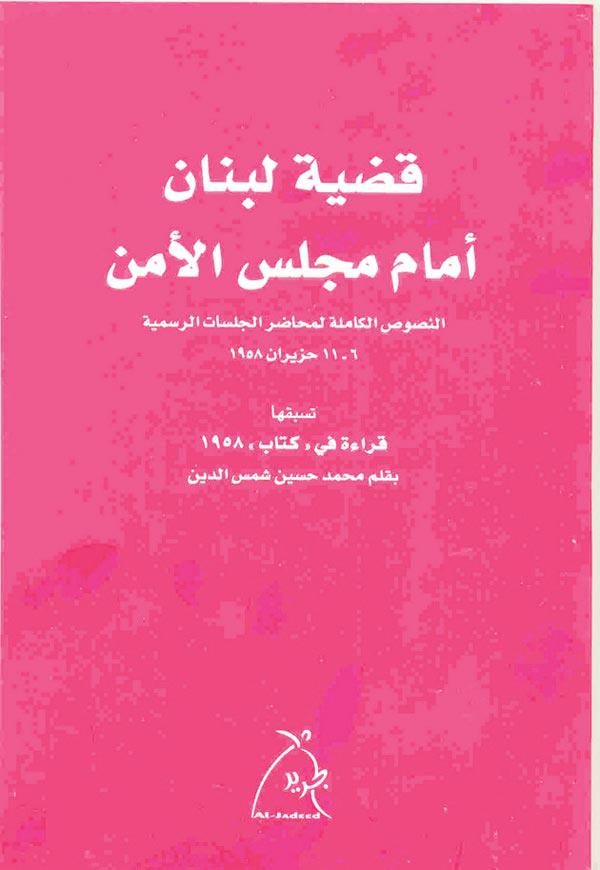 صدر عن دار الجديد كتاب «قضية لبنان أمام مجلس الأمن» قدّمه الباحث محمد حسين شمس الدين. الكتاب عبارة عن محاضر جلسات رسمية عقدها مجلس الأمن الدولي بين 6 و11 حزيران من العام 1958، للنظر في شكوى لبنان ضد الجمهورية العربية المتحدة (مصر) متّهماً إياها بالتدخل في شؤونه الداخلية، ودعم الثائرين في لبنان ضد السلطات القائمة إضافة إلى أعمال إرهابية تقوم بها عصابات مسلّحة تتسلّل من سورية وتزهق أرواح اللبنانيين وتقوض الأمن والسلم الداخليين. يلاحظ قارئ محاضر الكتاب الموثقة الشبه بين الازمة اللبنانية الراهنة بين المعارضة والموالاة وأزمة 1958 بين الرئيس كميل شمعون والقوى العروبية المدعومة من النظام الناصري. ولعل تلخيص جوهر محاضر الجلسات يعطينا صورة عمّا نقصده. فقد عقدت الجلسة الأولى يوم الجمعة 6 حزيران 1958. بدأ وزير خارجية لبنان شارل مالك مداخلته، مذكراً الجهد الذي بذله لبنان في الجامعة العربية لحلّ مشكلته مع الجمهورية العربية المتحدة، وكيف أن لبنان تقدّم بطلبات متتالية إلى مجلس الأمن لتأخير عقد هذا الجلسة إفساحاً في المجال أمام جامعة الدول العربية لحل موضوع الشكوى اللبنانية. إلا أنّ الجهود التي بذلت ذهبت سدى وفق مالك. وعدد الاخير نشاطات الجمهورية العربية المتحدة لتقويض إستقلال لبنان والنيل من سيادته، متهماً إياها بالقيام بسلسلة أعمال غايتها قلب الحكم في لبنان عبر دعم ثورة شعبية فيه، كاشفاً قيام سوريا بتدريب وتسليح اللبنانين. وطلب مالك من مجلس الأمن مساعدته على كفّ يد ج.ع.م عن التدخل في الشأن اللبناني وقيام علاقات طبيعية معها، وأن يتاح للبنانيين حل مشاكلهم دون التدخل الخارجي في شؤونهم. ردّ مندوب الجمهورية العربية المتحدة عمر لطفي على مطالعة مالك قائلاً انّ الحكومة اللبنانية لم تقبل باقتراحٍ تقدمت به ستّ دول عربية بينها العراق والأردن، تدعو إلى تعزيز العمل لوضع حدّ لكل ما يسيء إلى العلاقات بين الدول العربية، ومطالبة الحكومة اللبنانية بسحب شكواها إلى مجلس الأمن، ودعوة الأفرقاء اللبنانيين لإنهاء الإضطرابات وإتخاذ التدابير اللازمة لتسوية الخلافات الداخلية بالطرق الدستورية السلمية. ونفى المندوب المصري نفياً قاطعاً ما ورد بشأن تهريب الأسلحة من سورية مؤكداً من جهة أخرى انه بإمكان أي كان شراء الأسلحة وخاصة الخفيفة منها في أية بقعة من العالم وهي متوافرة في الأسواق. وكان موقف مندوب الإتحاد السوفياتي لافتاً من شكوى لبنان إلى مجلس الأمن، الذي اتهمه بأنه لم يستنفد محاولات حلّ مشاكله مع جيرانه بطريقة ثنائية أو عبر المنظمات الإقليمية، كما ينص عليها ميثاق الأمم المتحدة، قارئاً على الحاضرين نص بيان للمعارضة اللبنانية تحذّر الدولة اللبنانية من قضية تدويل الأزمة وأن الإتهامات التي توجهها إلى الجمهورية العربية المتحدة غايتها استجداء التدخل الأجنبي، واستدعاء قوات أجنبية إلى أرض لبنان . وعقدت في 15 حزيران 1958 الجلسة الثانية لمجلس الأمن فكان أول المتحدثين فيها مندوب الجمهورية العربية المتحدة، مقدماً مطالعة طويلة من الحجج المضادة على اتهامات مندوب لبنان، مفادها أن الإتهامات لا تستند إلى براهين موثوق فيها، فضلاً عن أنها صادرة عن أجهزة الأمن اللبنانية، التي غايتها تقديم المعلومات إلى الحكومة اللبنانية، مفنداً اتهامات لبنان ومسقطاً عنها الاهلية ومستعيداً المبادرة عبر شنّ حملة على لبنان متهماً إياه بشن حملة افتراء على الجمهورية العربية المتحدة عبر صحافته. أما مندوب لبنان فقد شرح أنه ومنذ ساعتين قبل إنعقاد المجلس وردته معلومات من الحكومة اللبنانية تؤكّد تفاقم الوضع الأمني مع تزايد حركة المسلحين وتهريب الأسلحة عبر الحدود. وألمح المندوب اللبناني الى أن أجوبة مندوب الجمهورية العربية المتحدة في ما خص تجاوزات دولته على لبنان لم تتجاوز الـ25 بالمئة مما أورده في شكواه في الجلسة الأولى، وأنه سينظر في هذه الإجابات ليتسنّى له الرد عليها وتبيان الحقيقة.بعد ذلك أعطي الكلام لمندوب الإتحاد 