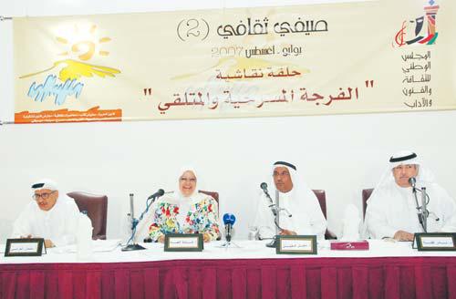 حضر الأمين العام للمجلس الوطني للثقافة والفنون والآداب بدر الرفاعي الجلسة النقاشية «الفرجة المسرحية والمتلقي» في قاعة مسرح كيفان، مع مجموعة من المسرحيين ومحرري الصفحات الفنية. استهلت مديرة ادارة المسرح كاملة العياد الكلمات بالقول أن المجلس الوطني يعنى بالتلاقح الفكري الدائم، مشيرة إلى المسرح الإغريقي أول الداعين إلى اشراك الجمهور في الفعل المسرحي. تلاها المؤلف المسرحي سليمان الحزامي قائلاً : «إن الفرجة هي تقديم السهل الممتنع. القضية شائكة فأي عمل يقوم على الفرجة ليس ثابت الأساس. نحن في العقد الأول من القرن الحادي والعشرين وتنوعت الفرجة في أشكالها وأطرها ويتعامل المتلقي معها بحذر». أضاف: «قد يكون هناك عمل لكنه لا يصل إلى الفرجة. إن أدوات العرض المسرحي من ممثل ونص وسينوغرافيا ومؤثرات وديكور تدخل في الفرجة. بالتالي يحاسب المتلقي من يقف خلفها وفق مفهوم يختلف من شخص الى آخر بحسب ثقافته ومعرفته المسرحية. أحيانا تحمل العبارة شيئاً من الفرجة للتفاعل معها. ارتبط المتفرج العربي بالأعمال الاستعراضية والكوميدية والمدغدغة للعواطف والرقص. حتى عناوين نصوص المسرحيات فيها شيء من الفرجة الجاذبة مثل «حزمني يا» و«الواد سيد الشغَّال»... وأشار الحزامي إلى توظيف الفرجة في عالمنا العربي في العقود الأخيرة فكان مسرح الطفل الضحية فالمستوى أقل أو أكثر وقد يفهمه الطفل أو لا يفهمه، والعرض يقوم على الابهار أكثر من الاشهار. مشيداً ببوادر مسرحية تحمل عناصر الفرجة مثل عرض عبد العزيز الحداد وسليمان البسام. وتمنى الحزامي من الرفاعي أن تتوسع الندوة لتعقد في مهرجان القرين الثقافي أو مهرجان الكويت المسرحي المقبلين، لأن الفرجة ليست قضية سهلة بل شائكة. عنوان فضفاضانتقل الحديث إلى الفنان دخيل الدخيل الذي أبدى ملاحظته حول عنوان الجلسة قائلاً انه فضفاض. أما العلاقة بين الفرجة والمتلقي فهي أزلية منذ نشأة المسرح لدى اليونانيين القدامى. وتابع قائلاً: «لو شاهدنا عروضاً لا بد من أن تكون هناك فرجة مسرحية. هذا التعميم سيضعنا أمام اشكالية كبرى، فالمتلقي في الكويت مختلف عنه في دولة أخرى، فما يقدم على خشبة المسرح في بعض البلدان، ومنها الكويت، لا ينتسب إلى المسرح بشكله الصحيح جملة وتفصيلاً. هناك جرعات سامة تفرض على المتلقي. نحن لا نستطيع أن نستغني عن النص والممثل والمتلقي فلا وجود للحركة المسرحية إذا غاب عنها المتلقي وهذه الخاصية لا توجد في الفنون الأخرى».المحاضر الثالث، الدكتور نادر القنة، قال: «إن القضية ليست حضوراً في الصالة بل منهج نقدي. ظهرت ثقافة المتفرج والمستقبل ليس عادياً. المتفرج أوسع ثقافة من المشتغلين في العرض نفسه، فتكسر الرؤية الأحادية. إن نظرية التلقي ليست حديثة بل قديمة اشتغل عليها النقاد العرب في أفقها الضيق».وهاجم القنة رواد المسرح العربي أمثال مارون النقّاش وأبو خليل القباني ويعقوب صنّوع لأنهم أغلقوا الباب على أنواع مسرحية أخرى، فاعتقدنا أن ما قدموه هو المسرح، معتبراً انها علاقة من طرف واحد. وتطرق القنة إلى النموذجية في مسألة التلقي في الكويت، مستشهداً بالصانع الأول محمد النشمي، وأحد تلاميذه صقر الرشود إذ تلقى عنه الفرجة المسرحية، وقدم الرشود «علي جناح التبريزي وتابعه قفه» من دون انغلاقية, ما حدا مؤلف النص ألفرد فرج الى القول أن قراءة الرشود أكثر وعياً وثراء، فقد صنع فرجة قابلة للتعددية. وقدم شايع الشايع عبر مسرحية «أنت لست جارا» شكلاً واعياً للفرجة المسرحية، وهو من مدرسة صقر الرشود ولم يغلق النص على احتمالية واحدة. اشتغل 6 أشهر بروفات وكان يفتح النص ويجدد في العرض المسرحي، رغم أن لدى الرشود ثراء في الجماليات والأزياء والديكور والسينوغرافيا. يرتكز على رؤية فكرية.