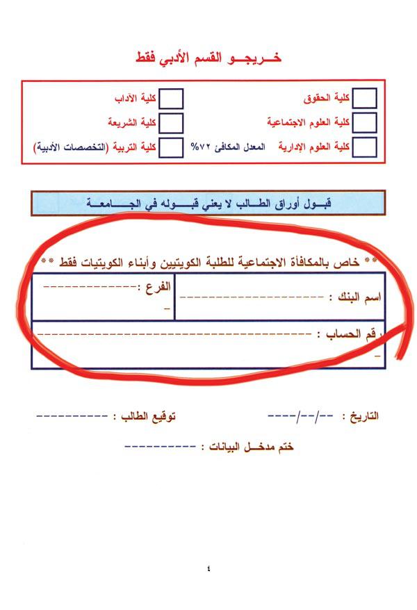 بخصوص قبول فئة غير المحددي الجنسية من ابناء الكويتيات أكد اسماعيل أنه طبقا لسياسة القبول للعام 2007/2008 تم تخصيص 100 مقعد لقبول أبناء الكويتيات (من غير محددي الجنسية) الحاصلين على شهادة الثانوية الكويتية بنسبة 80 % للقسم العلمي و85 % للقسم الأدبي. على ألا يمضي على تخرجهم من الثانوية أربعة فصول دراسية. ويتنافس هؤلاء الطلبة على القبول في جميع كليات الجامعة في ضوء المقاعد المحددة لهم.