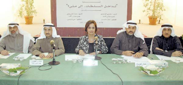 واشار الى ان عجلة التنمية توقفت في البلاد منذ اكثر من 25 سنة «بدليل المشاريع الكبرى والمهمة التي شهدتها البلاد مثل المستشفيات التي بني آخرها قبل 27 سنة فضلا عن وضع الكهرباء العام الماضي».من جانبه، قال النائب عادل الصرعاوي ان «ما نعانيه اليوم هو نتاج للسنوات الماضية»، موضحا ان «البلد بدأ من التحول من مرحلة الفساد الى مرحلة اللا فساد -اي الاصلاح- ومن اللا قانون الى القانون، وبداية هذا الاصلاح جاءت في تعديل هذه الدوائر الاخير».وأكد الصرعاوي ان الفساد السياسي جاء نتيجة فعلية لفقدان بعض الاقطاب والعناصر سلطتها وسيطرتها على الساحة، مشيرا الى ان التداخل كان مطلبا مقصودا لبعض الاطراف رغبة منها في وأد الديموقراطية، قائلا «ان بعض الوزراء سعى الى ضرب خطة التنمية لارضاء تلك الاطراف... وما تعانيه البلاد يعد من اصعب المراحل لا سيما بعد استشراء الفساد... ونحن نتخوف من ان يأتي يوم يمارس فيه الفاسدون التشريع».ولفت الى ان الحكومة مطالبة بتقديم خطة وبرنامج عمل ليكونا المعيار الذي يقيس مدى الانحراف عن العمل السياسي الصحيح، مبينا ان الحكومة «تفتقد سياسية المبادرة».وزاد ان تقارير ديوان المحاسبة باتت تغص بالمخالفات التي سجلت التعدي على الاموال العامة وأملاك الدولة، وهذا كله تداخل بين السلطتين، مشيرا الى ان العديد من القوانين فقدت هيبتها وان سيادة القانون باتت يضرب بها عرض الحائط من خلال الاعتراض عليها وعلى تطبيقها.وختم الصرعاوي حديثه قائلا «لن نستطيع التعامل مع التداخل بين السلطات من غير رؤية مشتركة وسعي نحو حل المشاكل التي تواجهنا».من جهته، قال علي الزعبي الدكتور في جامعة الكويت «ان تداخل السلطات اصبح امرا واقعا لن نستطيع انكاره لأن لدينا سلطة لا تؤمن بالنظام الديموقراطي، لكنها ترى في الدستور آلية سياسية تحقق لها مصالحها». واضاف ان لتداخل السلطات في الكويت ثلاثة ابعاد هي: ضبابية موقف الحكومة والصراع بين السلطة الحاكمة واستماتة الاعضاء الخمسين للعودة الى البرلمان وفق الدوائر الخمس.واضاف: لقد لاحظت مواقف بعض اعضاء مجلس الامة انها لا تؤخذ بناء على مصلحة البلد بل على مصالح شخصية بحتة، مبينا انه حتى الكتل البرلمانية لا تملك اجندة سياسية واضحة بل باتت المصالح تتقاطع حسب الابعاد الثلاثة السالفة الذكر.واشار الى ان «قوى الفساد مؤمنة بمبدأ الفوضى الخلاقة الذي تنتهجه الادارة الاميركية الا ان هذا النظام اثبت فشله مما نتج عنه استطاعة القوى ان تبني هذه الظروف لمرحلة اكبر سوءا من المرحلة السابقة».وأكد ان هناك نخبا سياسية في الكويت تعتمد على الطائفية والقبلية والطبقية تستفيد من ظاهرة الفساد بينما الروح التشريعية غائبة عن دور مجلس الامة.ومن جانبه قال وزير النفط الاسبق عادل الصبيح ان تداخل السلطات في الكويت «صرف الولاء عن الدولة الى الاحزاب والطوائف والقبائل».واضاف ان «اسلافنا واضعي الدستور كانوا متخوفين من ان يتنازل مجلس الامة عن ادواته التشريعية لمصلحة الحكومة الا ان ما حدث هو العكس فأصبحت الحكومة تتنازل للمجلس عن بعض ادواتها التنفيذية وهذا ما اسماه بالتداخل الخفي بين السلطات وطغيان طرف على آخر».وضرب الصبيح مثلا بعدد من المشاريع التي اوقفها المجلس رغم ان من حق الحكومة تنفيذها ومنها مشاريع التخصيص، وحقول الشمال، قائلا ان ذلك جاء تلافيا للمواجهة وخصوصا ان اي وزير يفضل المواجهة يجد نفسه وحيدا طريدا في ظل زمن تغلب فيه الكثرةُ الشجاعةَ مهما بلغت قوة الوزير. وأكد الصبيح ان البلد يعاني ضياعا في المسؤوليات، قائلا «نحن دولة اصابها الشلل في التنمية».وتساءل «كيف نتمكن من التنمية والدولة محتكرة لكل الاراضي، والحكومة تنافس في كل شيء حتى في شركات تعليم قيادة السيارات.وعاد الصبيح مجددا ليؤكد ان «المسألة الأخطر التي تواجه البلاد هي انصراف الولاء عن الحكومة الى القبيلة والاشخاص والجماعات لا سيما ان التفاخر بالقبيلة اصبح ظاهرة واضحة والاتهامات الطائفية باتت امرا منظورا للجميع».وشدد الص
