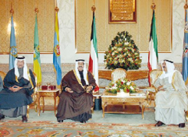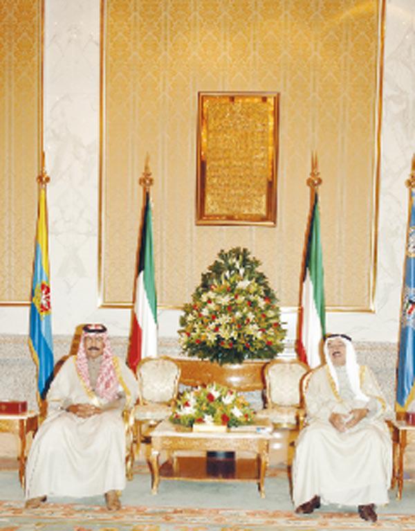 استقبل سمو أمير البلاد بقصر بيان أمس سمو ولي العهد الشيخ نواف الأحمد، كما استقبل سموه سمو رئيس مجلس الوزراء الشيخ ناصر المحمد، واستقبل سموه كذلك النائب الأول لرئيس مجلس الوزراء وزير الدفاع الشيخ جابر المبارك.كما استقبل سمو امير البلاد وبحضور سمو ولي العهد، رئيس مجلس الأمة جاسم الخرافي يرافقه رئيس مجلس الشعب التركي الدكتور كوسكال توبيتان والوفد المرافق له وذلك بمناسبة زيارته إلى البلاد.
