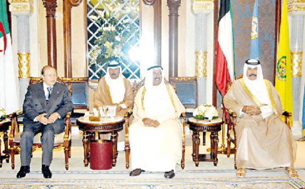 استقبل سمو أمير البلاد الشيخ صباح الاحمد بقصر بيان ظهر امس الرئيس الجزائري عبدالعزيز بوتفليقة بحضور سمو ولي العهد الشيخ نواف الاحمد بمناسبة زيارته الرسمية الى البلاد. وعقدت مباحثات رسمية بين الجانبين ترأس فيها عن الجانب الكويتي سمو أمير البلاد الشيخ صباح الاحمد وسمو ولي العهد الشيخ نواف الاحمد وكبار المسؤولين بالدولة، وعن الجانب الجزائري الرئيس عبد العزيز بوتفليقة رئيس الجمهورية الجزائرية الديمقراطية الشعبية والوفد المرافق له وكبار المسؤولين في الحكومة الجزائرية.
