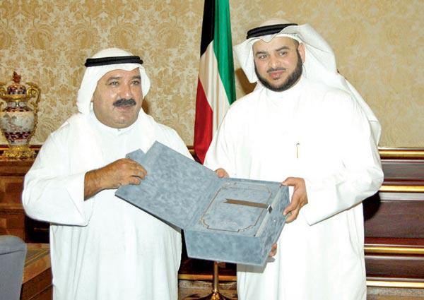 كما استقبل وزير الديوان، أمس، الدكتور حسين الهدبة الرشيدي، حيث قام بتقديم رسالة الدكتوراه التي حملت عنوان «مفهوم التمركز حول الطفل في الفكر التربوي الاسلامي» وذلك لإهدائها الى سمو أمير البلاد.
