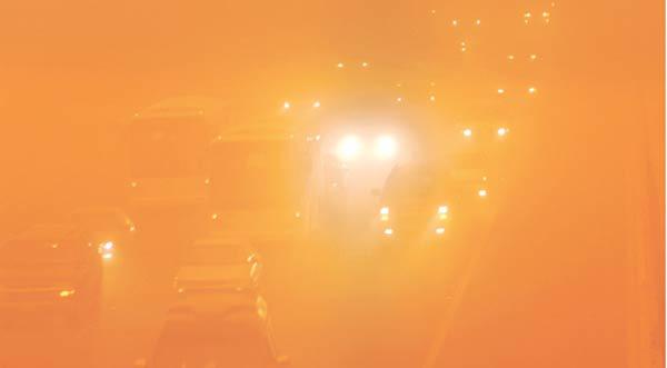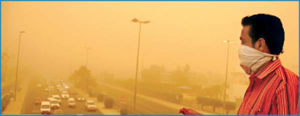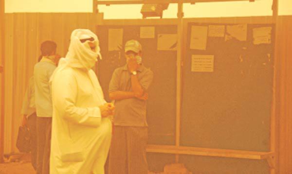 بينما كان المواطنون يتطلعون إلى جو مستقر بعد موجة عدم الاستقرار التي لازمت اجواء البلاد خلال الايام الماضية، حدث أمس انقلاب كبير في الطقس نتج عنه بعض الأحوال الجوية النادرة، لاسيما في وقت الظهيرة، عندما تحولت السماء إلى اللون الأحمر والبرتقالي، بسبب كثافة الغبار الذي ادى إلى عرقلة حركة السير، وأثر سلباً في الملاحتين البحرية والجوية، فضلا عن طلبة المدارس ومقار الاعمال وزيادة انتكاسة المرضى المصابين بالربو والحساسية الذين قضوا ليلة عصيبة جدا مليئة بالتعب والمرض والارهاق بعد زيادة عدد مراجعي مستشفيات البلاد، لاسيما الموجودة في المناطق المكشوفة مثل العدان والجهراء.
