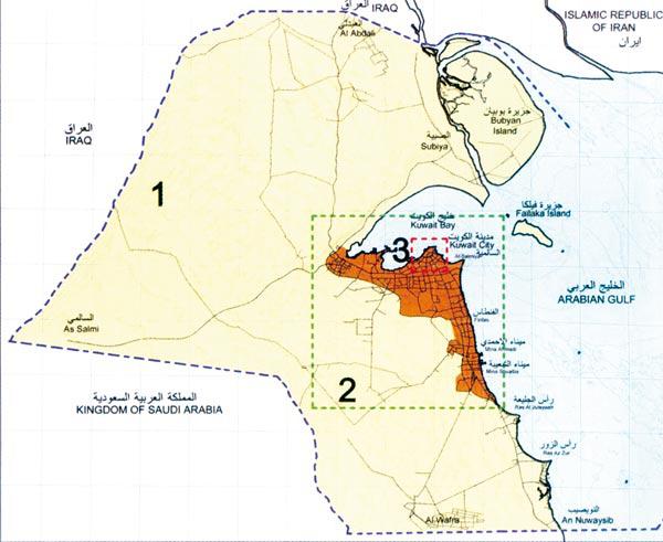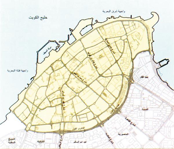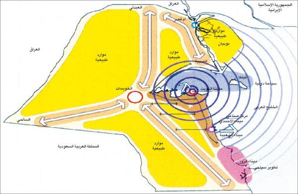 وفي ما يلي مكونات المخطط الهيكلي للكويت:تمهيديتكون مشروع «مراجعة وتحديث المخطط الهيكلي الثالث» من ثلاثة مستويات هي: الخطة الاستراتيجية الطبيعية القومية، والمخطط الهيكلي للمنطقة الحضرية، واخيرا المخطط الهيكلي لمدينة الكويت.وفي اطار اعداد تحديث وتطوير المخطط الهيكلي لدولة الكويت 2005، تم حساب التوقعات المستقبلية لعدد السكان حتى عام 2030، وهو عام الهدف للمخطط، وتم كذلك حساب الطاقة الاستيعابية للمنطقة الحضرية التي تبلغ نحو 2.8 مليون نسمة، بناء على تحليل الطاقة الاستيعابية القصوى للمرافق والخدمات وشبكات الطرق والمواصلات، وعلى هذا سيتم استيعاب نحو 2.5 مليون نسمة في مجموعة متكاملة من التجمعات العمرانية الجديدة خارج المنطقة الحضرية.من جانب آخر، يدعو المخطط الهيكلي إلى ضرورة الاستفادة من الموقع الاستراتيجي المتميز لدولة الكويت، والذي يؤثر في تحديد دور مدينة الكويت المقترح بأن تكون مركزا ماليا اداريا تجاريا محليا عالميا، ويتطلب هذا اعادة تشكيل استعمالات الأراضي ضمن المدينة لتخدم هذا الاطار وهذه الرؤية، ويعتمد هذا من جانب على توافر الاراضي بالمساحات المطلوبة ومن جانب آخر على امكان تغيير استغلال بعض المواقع الحالية المخصصة، كالمقابر على سبيل المثال، وعلى هذا فان استغلال الاراضي المتاحة والشاغرة الحالية كمنطقة المرقاب على المدى القصير، سيعمل على سرعة تنفيذ هذا التصور المطروح للمخطط الهيكلي للمدينة، بينما يتم تغيير استغلال المواقع الحالية المخصصة على المدى الطويل.لذلك تمت صياغة مقترحات المخطط الهيكلي لمدينة الكويت على ضوء حجم السكان الذي تم التوصل إليه في المخطط الهيكلي للمنطقة الحضرية، بالاضافة إلى صياغة سيناريوهات البدائل التخطيطية المقترحة للمدينة، للتأكد من توافقها مع الدور الحيوي المأمول أن تقوم به العاصمة.الإطار العام للاستراتيجيةوفي اطار ما توصلت إليه الخطة الاستراتيجية القومية الطبيعية، ستبلغ الطاقة الاستيعابية القصوى للسكان في المنطقة الحضرية 2.8 مليون نسمة، ويتم توطين الزيادة المتوقعة للسكان خلال فترة الخطة «2005/2030» خارج المنطقة الحضرية في المدن الجديدة والتجمعات العمرانية المقترحة، وعلى هذا يهدف الاطار العام للاستراتيجية القومية الطبيعية إلى لامركزية التخطيط، لتخفيض الضغط السكاني على المنطقة الحضرية الحالية والاهتمام بمدينة الكويت، حتى تقوم بدورها الحيوي كعاصمة للبلاد.فمدينة الكويت لم تحقق حتى الآن دورها القيادي المتوقع كعاصمة لواحدة من أهم دول الخليج العربي، كما لم يتم استغلال امكانات موقعها الاستراتيجي، او الاستفادة منه كحلقة وصل بين دول مجلس التعاون الخليجي في الجنوب والعراق ودول جنوب غرب آسيا في الشمال.ومن المتوقع ان يتم تطوير مدينة الكويت والاستفادة من موقعها الاستراتيجي واستقطاب الانشطة التجارية والادارية، لإحياء وتعزيز دورها الريادي كمركز مالي وتجاري اقليمي ودولي، من خلال تحسين وتطوير التخطيط العمراني، بهدف التنمية المستقبلية لدولة الكويت وضمان الاداء الجيد لدور مدينة الكويت كعاصمة سياسية ومركز الحكم لدولة الكويت.إمكانات تنمية مدينة الكويتتتمثل امكانات تنمية مدينة الكويت من خلال ثلاث سمات اساسية، إذ ترتبط السمة الاولى بموقعها الاستراتيجي وترتبط الثانية بقربها الطبيعي من استعمالات الاراضي الاساسية في المنطقة الحضرية، بينما ترتبط السمة الثالثة بطبيعة النسيج العمراني المشكِّل للمدينة.الموقع الاستراتيجي: تقع مدينة الكويت في موقع استراتيجي في الجزء الشمالي من المنطقة الحضرية، ويحيط بها الخليج من الشمال والشرق وهي متصلة بشكل جيد بشبكة من الطرق الاشعاعية المرتبطة بالطريق الدائري الاول، كما تقع مدينة الكويت عند التقاء المحور الشمالي الجنوبي لطريق الفحيحيل السريع مع طريق الملك فهد بن عبدالعزيز «طريق المغرب السريع سابقا» والمحور الشرقي الغربي للطريق الدائري الاول والدائري الثاني الذي يربطها بالمنطقة الحضري
