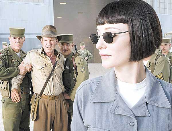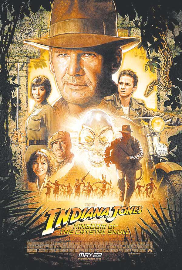 وIndiana Jones and the Temple of Doom عام 1984 وIndiana Jones and the Last Crusade عام 1989 ويمتّع المشاهدين الذين ينتظرون بشوق عودة إنديانا جونز ومغامراته الشيّقة.تدور أحداث الفيلم عام 1957، وبذلك يؤكد كاتب السيناريو ديفيد كويب أن إنديانا جونز (هاريسون فورد) لم يعد شاباً، لكنه ما زال رياضياً وقادراً على إبراز القوة في استعماله للسوط. بعد مشهد افتتاحي عادي جداً، تبدأ مواجهة بين إندي والعالمة السوفياتية الباردة الأعصاب إيرينا سبالكو (كايت بلانشات) في مستودع «المنطقة 51». ينجو إندي من انفجار نووي خلال اختبار في موقع صحراوي ثم يعود الى كليّة مارشال حيث يمارس مهنة التعليم بدوام جزئي. في هذا الوقت، يُستغنى عن خدماته في الكليّة ويطلب منه شاب يركب دراجة نارية يدعى مات ويليامز (شيا لابوف) مساعدته في كشف لغز الجمجمة الكريستالية الأسطورية، فيوافق ويتجه الإثنان إلى بيرو حيث يشاع أن الجمجمة سرقت من مدينة الذهب الغامضة. في هذه الأثناء، تصل إيرينا الى البلد المذكور للبحث عنها أيضاً، ويقال أن من يجدها يحظى بسلطة لا حدود لها وكميّة كبيرة من المعرفة. أمام القوة العسكرية التي تتمتع بها الروسية إيرينا، يحتاج إنديانا ومات للدفاع عن حياتهما وإكمال المهمة، وذلك بمساعدة زميل إندي القديم البروفسور اوكسلي (جون هورت) ووالدة مات ماريون رايفنوود (كارين ألن) وهي الحبيبة السابقة لإندي. يعود الفيلم ليأخذ الشكل والأسلوب وحتى المضمون المستعمل في الأفلام السابقة، وكأنه صوّر مباشرة بعد الجزء الثالث. صحيح أن التقنيات في صناعة الأفلام تطوّرت في السنوات العشر الأخيرة، لكن سبيلبرغ طلب من مدير تصويره الحفاظ على روحيّة الأفلام السابقة، فكانت المؤثرات البصريّة غير مضخّمة، وهنا يمكن التأكيد أن الجزء الاخير هو الأفضل والأغلى، بلغت كلفة الإنتاج 185 مليون دولار.الفيلم مليء بالحركة وتتخلله مشاهد ضرورية تبطىء من حركة الأحداث لفترة محدودة. أما قمة التشويق فتأتي من خلال مشهد يتضمن مطاردة سيارات في الأدغال وعلى ضفاف النهر، ثم مواجهة مميتة مع النمل الأحمر وثلاث قفزات في شلالات ضخمة. مبالغاتإذا كان لا بد من وجود اعتراض ما على الفيلم، فيتجلّى في بعض المشاهد التي تصبح شبه كرتونية، منها تأرجح مات مع الأغصان مثل طرزان وقدرة إندي على النجاة من انفجار نووي من خلال وضع نفسه في براد.في الأفلام السابقة، كانت فكرة موت الشخصيات واضحة دائماً حتى عند مواجهة العوائق الإستثنائية، لكن في «إنديانا جونز» لا تتأذى الشخصيات كثيراً. عموماً يمكن القول إن مغامرات إندي لم تكن يوماً مرتبطة بالواقع، لذلك يمكن استيعاب المبالغات بسهولة. أما ذروة الفيلم، الذي يجمع الشخصيات في مدينة الذهب وفي مواجهة مع مخلوق فضائي شبيه بما شاهدناه في فيلم سبيلبرغ Close Encounters of the Third Kind، فيزيد من الإستعراض حتى النهاية. الأمر نفسه في ما يخصّ الخاتمة التي قد ترضي أي شخص يتوق الى مشاهدة النهاية السعيدة بين إندي وماريون منذ فيلم Raiders of the Lost Ark . روعة الأداء مثل شخصيته الأسطورية والرمزية، يمكن القول أن هاريسون فورد ليس جباناً ولا يدع شيئاً، كالعمر مثلا، يقف في طريقه. تميّز في دوره على الرغم من بلوغه الستين، يملك نزعة للمغامرة التي جعلت إنديانا جونز محبوباً طوال الـ26 عاماً الماضية. كذلك تميزت كارين ألن بأداء دور ماريون رايفنوود وما زالت تبدو رائعة. كانت فكرة صائبة في إعادتها إلى الفيلم، فهي وفورد يملكان جاذبية متشاركة. من ناحيته، يندمج شيا لابوف، الذي يؤدي دور مات ابن ماريون، مع الممثلين المشاركين ويأخذ المشعل عن إندي في بعض مشاهد الحركة، فيما تندمج كايت بلانشيت في دورها الشرير لإيرينا سبالكو، والأقل نجاحاً هو الممثل راي وينستون. قلة من صانعي الأفلام يستطيعون إخراج فيلم ناجح مثل ستيفن سبيلبرغ، وما من شك في أن الفيلم ناجح بفضل عبقرية هذا المخرج. يعرف كيف يلتقط ويكشف السر في أفلام كهذه، لكنه نادراً ما يجعل هذا الأمر يقف عائقاً في رواية القصة... Indiana Jones and the Kingdom of Crystal Skull فيلم مسل ومبدع واذا كان 