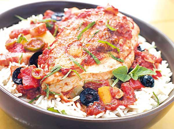 الدجاج مع البروكولي والكاجو (لأربعة أشخاص)المقادير- ثلاثة أكواب من أزهار البروكولي الصغيرة الساق (نحو 225 غراماً من الأزهار).- جزرتان كبيرتان مقطّعتان إلى دوائر رقيقة (كوبان).140-- غراماً من النودلز.- ملعقة زيت زيتون كبيرة.- ملعقة زنجبيل طازج مفروم كبيرة.- ثلاثة فصوص ثوم كبيرة مفرومة.- ست قطع من صدور الدجاج المنزوعة العظم والجلد (وزن كل منها 170 غراماً) والمقطعة عرضياً.- ملعقة كبيرة من صلصة الصويا القليلة الملح.- ملعقة زيت سمسم محمّص صغيرة.- ثلاث أوراق بصل أخضر مقطعة شرائح صغيرة (نحو نصف كوب).- نصف كوب من مرق الدجاج القليل الملح والخالي من الدهون.- نصف كوب من الكاجو غير المملح (85 غراماً) والمحمص قليلاً.الطريقة: 1 - ضعي قدر ماء على النار واتركيها حتى تغلي. ثم أضيفي إليها البروكولي والجزر والنودلز. غطيها ودعيها على النار من ثلاث إلى خمس دقائق حتى تصبح الخضار طرية. ثم صفي المكونات من الماء وانقليها إلى وعاء متوسط الحجم. 2 - غطي الوعاء بورق الزبدة.3 - على نار متوسطة، قلّي الزنجبيل والثوم مع زيت الزيتون في مقلاة كبيرة غير لاصقة. تابعي التحريك مدة دقيقة أو اثنتين إلى أن يصبح لون الثوم ذهبياً. 4 - أضيفي قطع الدجاج وصلصة الصويا وزيت السمسم. قلّبيها مدة أربع إلى خمس دقائق أو حتى تنضج بالكامل. 5 - أضيفي البصل الأخضر وتابعي القلي دقيقة إضافية.6 - أضيفي النودلز والخضار والمرق وحركيها إلى أن يسخن المزيج.7 - ضعي ملعقتين كبيرتين من الكاجو فوق كل حصة.في الحصة: 398 سعرة حرارية، 30 غراماً من البروتين، 42 غراماً من الكربوهيدرات، 5 غرامات من الألياف، 14.5 غراماً من الدهون، 2.5 غرام من الدهون المشبعة، 47 ملغراماً من الكولستيرول، و366 ملغراماً من الصوديوم.... ومع الزيتون (لأربعة أشخاص)المقاديرملعقة زيت زيتون كبيرة.بصلة كبيرة مقطعة قطعاً متوسطة الحجم.ثلاثة فصوص ثوم كبيرة مفرومة.ملعقة صغيرة من أوراق إكليل الجبل المقطعة أو ثلاثة أرباع ملعقة صغيرة من إكليل الجبل المجفف والمطحون.450 غراماً من صدور الدجاج المنزوعة العظم والجلد والمقطعة إلى قطع متوسطة الحجم.ربع ملعقة صغيرة من الفلفل الأسود المطحون.40 حبة من زيتون كالاماتا اليوناني منزوعة النواة (نحو كوب وثلث) تحتوي على دهون أحادية غير مشبعة.228 غراماً من الطماطم الصغيرة المقطعة إلى نصفين أو حبتا طماطم كبيرتان مقطعتان قطعاً كبيرة (نحو كوب ونصف).الطريقة:1 - حمّي الزيت في مقلاة كبيرة غير لاصقة على حرارة متوسطة.2 - أضيفي البصل والثوم وإكليل الجبل وواصلي تحريكها مدة ثلاث إلى أربع دقائق حتى تصبح طرية وتبدأ بالاحمرار.3 - أضيفي الدجاج. رشي فوقه الفلفل وتابعي التحريك مقلّبة الدجاج باستمرار حتى يختفي لونه الوردي، أي نحو خمس إلى سبع دقائق.4 - أضيفي الزيتون إلى المقلاة وحركي المزيج لدقيقة أخرى. ثم أضيفي الطماطم وخفّضي الحرارة. 5 - غطي المقلاة واتركيها على النار من أربع إلى خمس دقائق إلى أن يطيّب الطماطم المزيج بخواصه.6 - يمكنك تقديم الطبق مع الرز أو الكسكس.في الحصة (بدون الرز أو كسكس): 286 سعرة حرارية، 25 غراماً من البروتين، 10 غرامات من الكربوهيدرات، 2 غرام من الألياف، 16 غراماً من الدهون، 2.5 غرام من الدهون المشبعة، 63 ملغراماً من الكولستيرول، و671 ملغراماً من الصوديوم.ملاحظة: ينضج زيتون كالاماتا اليوناني على الأشجار. لذلك يحتوي كمية أكبر من الزيت وبالتالي كمية أكبر من الدهون الأحادية غير المشبعة، بالمقارنة مع الزيتون العادي.