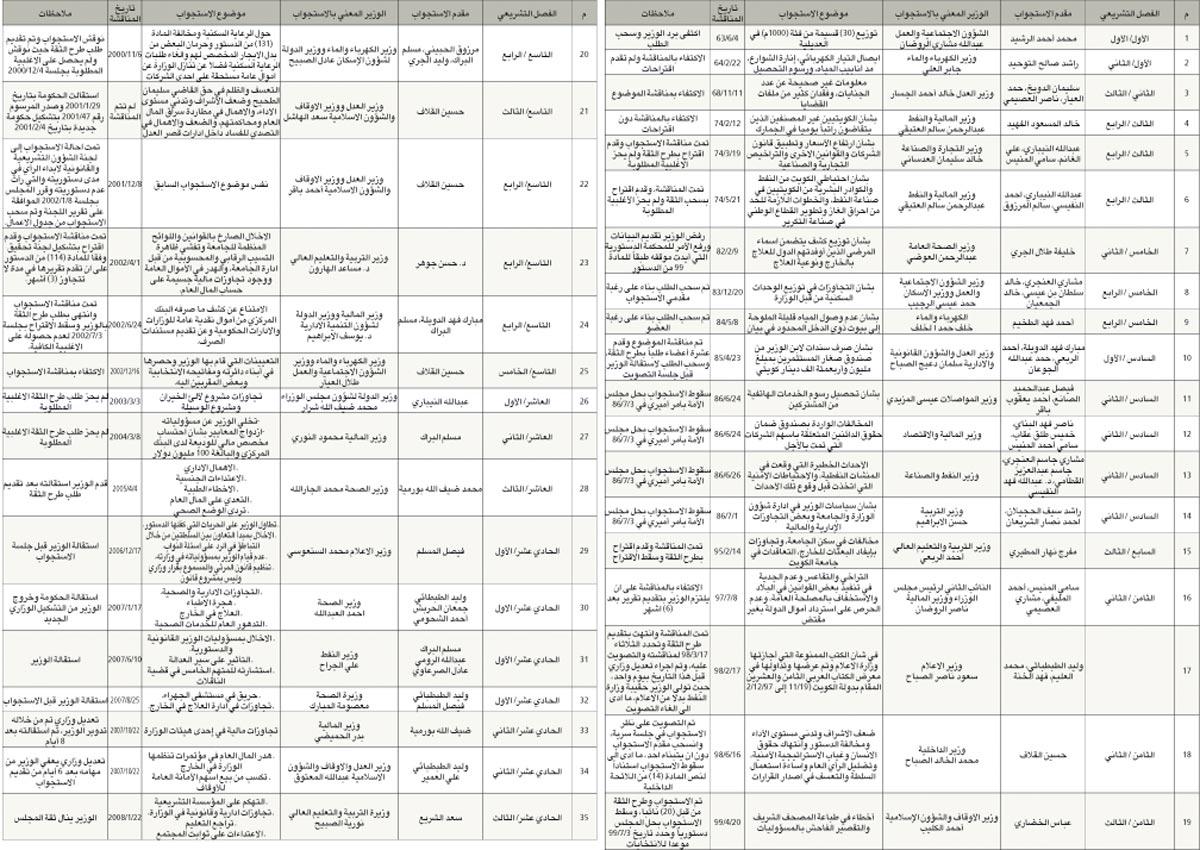 الاستجوابات البرلمانية منذ بدء الحياة النيابية عام 1962 حتى 2008 نشر في 19-12-2008 | 00:00 آخر تحديث 19-12-2008 | 00:00