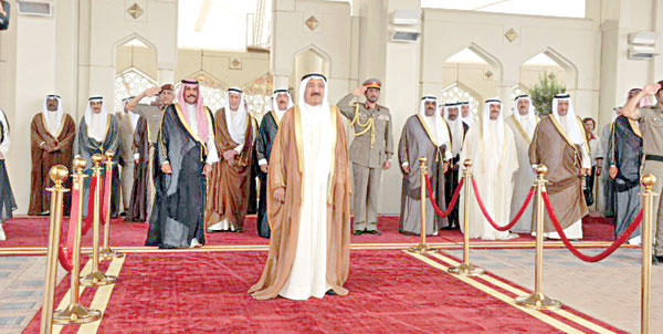 وكان في استقبال سموه على ارض المطار سمو ولي العهد الشيخ نواف الاحمد وكبار الشيوخ وسمو الشيخ ناصر المحمد رئيس مجلس الوزراء والنائب الاول لرئيس مجلس الوزراء وزير الدفاع الشيخ جابر المبارك ووزير شؤون الديوان الاميري الشيخ ناصر صباح الاحمد وكبار رجالات الدولة وكبار المسؤولين بالدولة وجمع غفير من المواطنين.