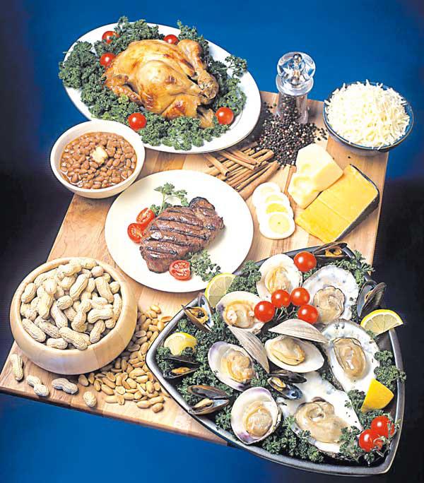 الكاربوهيدراتتناولي ست حصص، توازي كل واحدة منها:- كوب صغير (ثلاث ملاعق كبيرة ممتلئة تقريباً) من حبوب الفطور.- شريحة متوسطة من الخبز، أو عجينة بيتا أو تورتيلا صغيرة.- شطيرة متوسطة الحجم من عجينة البيتا أو التورتيلا.- أربع قطع من رقاقات الرز أو الشوفان.- حبتا بطاطا.- ثلاث ملاعق كبيرة ممتلئة (نصف كوب) من المعكرونة المطهية أو البيض أو النودلز أو الكسكس.- ملعقتان كبيرتان ممتلئتان من الرز المطهي.- ثلاث ملاعق كبيرة ممتلئة من الحبوب أو العدس أو الذرة.- قطعة بسكويت قليل السعرات الحرارية.البروتيناتتناولي ثلاث حصص يومياً، توازي كل حصة:- 75 إلى 100 غرام من لحم العجل أو الدجاج أو الحبش المطهي، أو حتى السمك الدهني.- 150 غراماً من السمك الأبيض المطهي أو ثمار البحر.- 150 غراماً من الصلصة البولونية أو الصلصة الحارة.- بيضتان (الحد الأقصى: ست بيضات أسبوعياً).- خمس ملاعق كبيرة من العدس والحبوب المطهية.- 35 غراماً من الجوزيات أو زبدة البندق أو 75 غراماً من الحمص القليل السعرات الحرارية.الخضارتناولي ثلاث حصص يومياً على الأقل، توازي كل حصة: - ثلاث ملاعق كبيرة من الخضار الطازجة أو المثلجة أو المعلبة.- كوب من السلطة أو الحبوب الخضراء. - حبة طماطم متوسطة أو ست حبات طماطم صغيرة أو صلصة الطماطم القليلة الدسم.الفاكهةتناولي ثلاث حصص يومياً، توازي كل حصة:- حبة فواكه متوسطة الحجم كالتفاح أو البرتقال أو الإجاص.- كوب مليء بالتوت أو العنب.- قطعتان صغيرتان من الفاكهة كالخوخ.- شريحة كبيرة من فاكهة كبيرة كالشمام أو البطيخ أو الأناناس.- ثلاث ملاعق كبيرة من الفاكهة المعلبة أو المجففة أو العصير.- كوب (50 ملل تقريباً) من عصير الفاكهة غير المحلّى.- ملعقة كبيرة من الفواكه المجففة.الحليب ومشتقاتهتناولي حصتين يومياً، توازي كل حصة:- 300 ملل من الحليب المقشود أو 200 ملل من الحليب القليل الدسم أو حليب الصويا المقوّى.- كوب صغير من اللبن الطبيعي القليل الدسم.- 30 غراماً من الجبنة الصفراء الطازجة القليلة الدسم.- 50 غراماً من الجبنة البيضاء الطازجة القليلة الدسم.الصلصاتتناولي ثلاث حصص يومياً، توازي كل حصة:- ملعقة صغيرة من الزيت أو المرغرين أو الزبدة أو المايونيز.- ملعقتان صغيرتان من صلصة السلطة القليلة الدسم.- ملعقة كبيرة من الكريما الحادة المذاق أو الكريما الطازجة القليلة الدسم.- ملعقتان كبيرتان من الصلصة الخالية من الدسم.