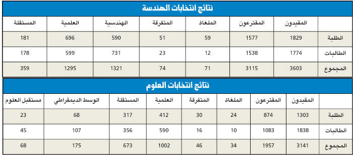 الهندسية أطاحت علمية الهندسة وتقاسمت الخالدية مع الائتلافية علمية العلوم تفوز بـ 1002 صوت للمرة الرابعة على التوالي