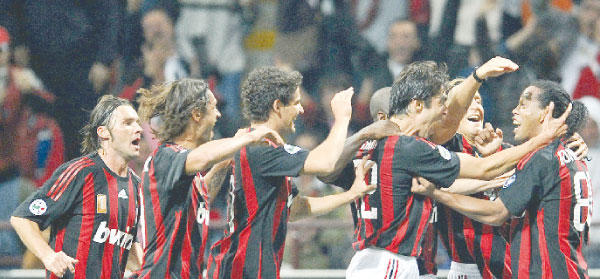 حرم ميلان جاره انتر ميلان من استعادة الصدارة بفوزه عليه 1/صفر، فذهبت الى لاتسيو الذي تغلب على مضيفه تورينو 3/1 امس الاول الاحد في ختام المرحلة الخامسة من الدوري الايطالي لكرة القدم.على ملعب جوزيبي مياتزا الذي يتقاسمه قطبا مدينة ميلانو، بدأ الفريقان اللقاء بكامل نجومهما فضمت تشكيلة ميلان الثلاثي البرازيلي كاكا ورونالدينيو وباتو (الذي حل محل ماركو بورييلو المصاب)، اضافة الى الحارس كريستيان ابياتي والمدافعين الجورجي كاخا كالادزه والتشيكي ماريك يانكولوفسكي وجانلوكا زامبروتا وباولو مالديني، ولاعبي الوسط جنارو غاتوزو وماسيمو امبروزيني والهولندي كلارنس سيدورف.في المقابل، ضمت تشكيلة انتر ميلان 3 برازيليين و3 أرجنتينيين ورومانيا وايطاليا وبرتغاليا وسويديا وفرنسيا، وهم يشكلون كوكبة من النجوم العالميين.وبدأ اللقاء هادئا من الجانبين، إذ بدا أن الخطأ ممنوع على اي منهما فسارت الامور عادية وطبيعية من دون خطورة كبيرة على الحارسين ابياتي والبرازيلي جوليو سيزار قبل أن يقوم كاكا باختراق في الجهة اليسرى ويعيد الكرة من على خط الملعب خلفية الى رونالدينيو داخل المنطقة فأطلقها الاخير طائرة، وكانت ردة فعل مواطنهما جوليو سيزار سريعة، وأبعد الكرة باقتدار حارماً اصحاب الارض من هدف أول (25).رونالدينيو يسجل هدفاً بتمريرة كاكا (المتسلل)وواصل ميلان ضغطه الهجومي وأرسل رونالدينيو كرة طويلة من نقطة منتصف الملعب الى كاكا في الجهة اليمنى (كان في موقف تسلل)، وانتظر الاخير دخول مواطنه المنطقة وأعادها إليه عرضية عالية فطار لها رونالدينيو وعلا فوق الجميع واطلقها برأسه قذيفة لا ترد من خلف الارجنتيني استيبان كامبياسو فاستقرت في الزاوية اليسرى لمرمى جوليو سيزار (37). وتعددت تهديدات ميلان لمرمى سيزار الذي انقض على كرة وصل بها باتو إلى مسافة قريبة من مرماه بعدما هرب من المدافعين (34)، ثم خطف كرة لا تقل خطورة قبل صافرة نهاية الشوط الاول. وأجرى البرتغالي جوزيه مورينيو تبديلا مزدوجا فأخرج المدافع ماركو ماتيراتزي والمهاجم مانسيني ودفع بثنائي الهجوم الارجنتيني خوليو كروز والبرازيلي ادريانو (58).ونقصت صفوف الفريق الضيف بطرد الارجنتيني نيكولاس بورديسو لنيله الانذار الثاني اثر خطأ ضد كاكا (77) فصعبت مهمة فريقه في إدراك التعادل.ونال المشاغب ماتيراتزي بطاقة حمراء، وهو على مقاعد الاحتياطيين لاحتجاجه على قرارات الحكم (84)، ولعب الاوكراني اندري شفتشنكو في الدقائق الست الاخيرة مكان رونالدينيو، وأهدر الفرنسي ماتيو فلاميني، بديل باتو، فرصة هدف ثانٍ بتسديدة قريبة من المرمى أطلقها في جسم أحد المدافعين (86).وطاشت تسديدة الاوكراني الذي لم يظهر في مستواه السابق مع فريقه السابق الذي عاد اليه بعد رحلة غير موفقة الى تشلسي الانكليزي (88)، ثم حوّل سيزار تسديدة اخرى للاعب نفسه الى ركنية لم تثمر (89)، واضاع كواريسما وبعده ادريانو آخر فرص انتر ميلان للتعديل في الوقت بدل الضائع فبقي رصيده 10 نقاط مقابل 9 لميلان. لاتسيو يواصل عروضه القويةوفي اللقاء الثاني، افتتح المقدوني غوران بانديف التهديف للاتسيو (30) مسجلا هدفه الرابع هذا الموسم، وعزز الارجنتيني ماورو زاراتي تقدم فريقه بالهدفين الثاني (63) والثالث (83 من ركلة جزاء تسبب بها ماتيو سيرني وطرد) محرزا هدفه السادس في صدارة ترتيب الهدافين، قبل أن يقلص المخضرم نيكولا أموروزو الفارق من ركلة جزاء في الوقت بدل الضائع (92).ورفع لاتسيو رصيده إلى 12 نقطة بفارق نقطة واحدة أمام نابولي الذي صار ثانيا بفوزه على مضيفه بولونيا بهدف وحيد للارجنتيني جرمان دينيس (87).وحقق روما وصيف البطل في المواسم الثلاثة الماضية فوزه الثاني في الموسم الحالي على حساب اتالانتا برغامو 2/صفر على الملعب الاولمبي في العاصمة ملحقا الهزيمة الثانية بضيفه الذي وقف رصيده عند 9 نقاط احتل بها المركز الرابع قبل هذه الهزيمة، بينما رفع الفائز رصيده إلى 7 نقاط.وتقدم المضيف بهدف مبكر للمدافع الدولي المخضرم كريستيان بانوتشي الذي و