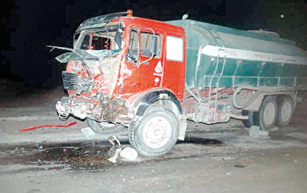 وقع حادث تصادم بين صهريجي ديزل ومجارٍ عند جسر سكراب ميناء عبدالله على طريق الملك فهد مساء امس الاول، مما أدى إلى إصابة سائق صهريج المجاري بكسور وجروح.