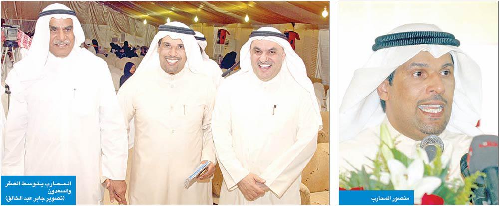 وقال المحارب في بداية حديثه: «نحن بحاجة قبل أن نتحدث عن التنمية، أن نتحدث بضمائرنا عما فعلناه من أجل الكويت، فالناخبون يتحملون مسؤولية ما آلت اليه الأوضاع لعدم حسن اختيارهم»، مشيراً إلى أن هناك مؤامرة حقيقية على الدستور، وهناك من يحاولون تسويق الاحباط الذي نشعر به على أنه الأساس، بغرض الغاء الدستور، ويراهنون بأن نسبة الاقتراع لن تزيد على 50 في المئة، محذرا من قلة نسبة المشاركة التي تعطيهم الفرصة في تنفيذ ما يسعون اليه.وأشار الى أن أعداء الدستور يريدون مجلس أقزام، فلا يطالب فيه أحد بحقوق المواطنين، بحيث تكون آخر اهتماماته، وإلا فسيكون المجلس مجلس تأزيم، متسائلا: ما هو التأزيم من نظرهم الذي يعطيهم الحق في الترويج للحل غير الدستوري؟ وذكر بنتائج الحل غير الدستوري الكارثية مثل أزمة المناخ، والغزو العراقي، وسرقتي الناقلات والاستثمارات.وأوضح المحارب ان المواطن الكويتي يعتبر أقل المواطنين الخليجيين من حيث مستوى الخدمات التي يحصل عليها، فضلا عن أن دخله لا يتناسب مع ايرادات دولته، مشيراً إلى أن فائض الميزانية خلال ثلاث سنوات بلغ 60 مليون دينار، متسائلاً: «ماذا استفاد المواطن من هذا الفائض؟» لافتا الى أنه حسب احصائية للجمعية الاقتصادية الكويتية فإن 90 في المئة من المواطنين يخافون أن تكون الخمسة أعوام المقبلة هي الأصعب في تاريخ الكويت.الدائرة الثانيةوبين المحارب أن البلد تراجع في جميع المستويات التعليمية والصحية والاقتصادية والرياضية، بسبب الاختيارات السيئة، لافتا أن الدائرة الثانية التي يخرج منها رئيس مجلس الأمة، ويتوقع أن يكون منها أيضا نائب الرئيس، للاسف يتم فيها تأجير المنازل لمرشحين بـ30 ألف دينار، متسائلا: كيف نطالب بتحقيق التنمية وهذا سلوكنا؟ وأين دور المواطنين؟ وتابع بأن الكويت ليست من ضمن الخمسين دولة التي تستخدم حكوماتها التكنولوجيا، مشيرا الى أن الناخبين أمام مسؤولية وطنية وإذا لم تصبح أجندتهم وطنية في الاختيار فلن يتحقق الاصلاح.وأكد أننا لسنا بحاجة الى المزايدات، لكننا بحاجة الى المصارحة والمكاشفة، فالناخب هو السبب الرئيسي في ما آلت اليه الامور، فاذا وفق في اختيار مجلس قوي، فستفعّل الحكومة المادة 98 من الدستور، وستتقدم ببرنامج عمل خلال ثلاثة أسابيع من تشكيلها كما ينص الدستور، مطالبا الناخبين بممارسة دورهم يوم 16 مايو.وقال إن دوافعه إلى الترشح كانت تنبع دائما، من رغبته في القضاء على الاحباط وتردي الأوضاع العامة في البلاد وتفشي الفساد، مع رغبته في العمل على خلق صحوة ووعي وطنيين أصيلين في تفضيل المصلحة العامة على الشخصية الطاغية هذه الأيام، مشيرا الى أنه سيعمل على مطالبة الحكومة بتقديم برنامج عمل وفق خطة زمنية محددة حتى تحاسب عليها حين تتقاعس عن تنفيذها.وشدد على ضرورة تشكيل حكومة «تكنوقراط» متخصصة ذات كفاءة عالية، بعقول مستنيرة وشخصيات مسؤولة، ومحاربة ظاهرة الفئوية والتمييز، والدفاع عن الحريات العامة وحماية الحقوق والمكتسبات الدستورية وفتح المجال أمام الطاقات الشابة لتبرز ابداعاتها وانجازاتها، والتركيز على المفاهيم الكونية كالمواطنة وحقوق الانسان والمجتمع المدني مع الحفاظ على هويتنا الوطنية والدينية، ودعم المرأة واستمرار المطالبة للحصول على جميع حقوقها الاجتماعية والانسانية إلى جانب حقوقها السياسية.البرنامج الانتخابي وبين المحارب أن برنامجه الانتخابي يعتمد على تسع ركائز أساسية، أولا الاصلاح الذي سيتحقق عن طريق وضع خطة توافقية، تتحدد فيها قواعد الاصلاح، على أن تمزج بين تلك القيم العالمية والثوابت المشكلة للهوية، اذ لا يمكن للكويت أن تعيش بجزيرة معزولة عن اهتمامات العالم، كما لا يجوز انتزاعها من خصوصياتها الثقافية والدينية، ثانيا: المرأة التي تشكل نصف المجتمع وهي شريك أساسي في التنمية الوطنية، وبدونها لا تكتمل المشاركة السياسية ولا يتحقق التعايش المجتمعي، مؤيدا وضع استراتيجية شاملة في الدولة تولي المرأة اهتماما خاصا، وتمن
