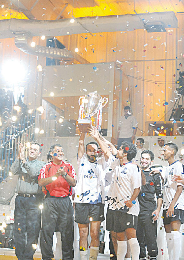 توّج فريق الزمردة القابضة بطلا للنسخة الـ29 لدورة المرحوم عبدالله مشاري الروضان لكرة الصالات، عقب فوزه في المباراة النهائية على ديوانية الشهاب بثلاثة اهداف مقابل هدف، كما توّج نجم الزمردة الايراني محمد حيدريان بلقب أفضل لاعب. وقام راعي الدورة ناصر الروضان والشيخ احمد الفهد رئيس اللجنة الاولمبية، بتسليم الكأس الى الفريق الفائز، بحضور عدد كبير من القيادات ومسؤولي الحركة الرياضية. وكان حفل الختام بدأ بكلمة راعي الدورة ناصر الروضان، الذي شكر الحضور وجمهور الدورة الغفير والشركات الراعية، وقام احد نجوم الختام وشيخ المعلقين خالد الحربان بتقديم فقرات الحفل مع الاعلامي محمد المسند. «الروضان» هزم «نجوم العالم» ووصلت الاثارة والمتعة الكروية ذروتيهما مع المباراة الاستعراضية التي جمعت بين منتخب نجوم العالم ومنتخب الروضان، والتي حسمها الاخير لمصلحته بثلاثة أهداف مقابل هدفين. ومثّل فريق نجوم العالم توأم الكرة المصرية حسام وابراهيم حسن وثنائي المنتخب السنغالي بابا ماليك واندرياس منغا وهداف النادي العربي الدولي السوري فراس الخطيب وحارس مرمى نادي الكويت خالد الفضلي. وضم منتخب الروضان اللاعبين صالح حيدر ومشاري النكاس والهولندي احمد ولد عمر والايراني زهير اكبر وعبدالوهاب الصفي وفهد الطريجي ويعقوب بن حيدر وفراج ناصر. وجاءت أحداث المباراة سريعة، وشهدت لمسات فنية عالية من لاعبي الفريقين. «الزمردة» بطل دورة الروضانوفي المباراة الرئيسة والنهائية التي جمعت الزمردة القابضة مع ديوانية الشهاب، كانت الندية كبيرة بين الفريقين، لكن الزمردة كان هو الطرف الاخطر على المرمى، وتمكن من الحصول على ركلة جزاء مبكرة اخفق حيدريان في تحويلها الى هدف السبق. في المقابل لم تكن هناك مبادرة هجومية تذكر للشهاب، الذي تأثر لاعبوه بالضغط الجماهيري والتشجيع الكبير للنجم حيدريان. وانتهز نجم الزمردة مهرداد فرصة انشغال لاعبي الشهاب بزميله حيدريان، وشن العديد من الانطلاقات الهجومية على مرمى الشهاب، حتى ادرك الهدف الاول لفريقه من تسديدة مباغتة خدعت حارس الشهاب. وحافظ لاعبو الزمردة على ثباتهم الدفاعي بعد الهدف، في الوقت الذي اندفع فيه لاعبو الشهاب إلى الامام بحثا عن هدف التعادل والحفاظ على آمال الفوز، وبالفعل نجح موسى حسن في تسجيل هدف التعادل للشهاب في الدقيقة الاخيرة من المباراة. واحتكم الفريقان إلى شوطين إضافيين شهدا سيطرة مطلقة للاعبي الزمردة، وتمكن اللاعب مهرداد من اضافة الهدف الثاني للزمردة من مجهود شخصي يُحسب له. وواصل الزمردة تقدمه واضاف حيدريان الهدف الثالث من ركلة جزاء احتسبت لمصلحة زميله حيدر باقر، الذي تعرض لعرقلة واضحة من جانب حارس الشهاب.