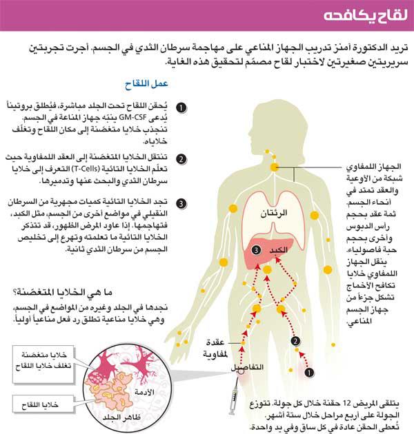 ماتت أنيتا التي أخذت لقاح سرطان الثدي السنة الماضية، وظهر المرض مجدداً لدى امرأتين كان اختقى من جسمهما بعد تلقّيهما اللقاح. لذلك من الطبيعي أن تشعر آمنز التي تعمل على اللقاح أن جهدها يتلاشى تدريجاً. لكن سرعان ما تذكرت عالمة الأورام هذه، التي تعمل في جامعة جونز هوبكنز، كل ما تعلمته، والبيانات كافة التي جمعتها، وعيّنات الدم التي فحصتها، والنجاحات التي حققتها. هدف لقاحها هذا تدريب جهاز المناعة على مهاجمة سرطان الثدي من دون أن يلحق الأذى بالجسم، وقد ساهم في تحفيز ردود الفعل المناعية عند ثلث النساء اللواتي تلقّينه.صحيح أن آمنز لا تملك دليلاً يثبت تأثيرات هذا اللقاح الإيجابية، لكن نساء كثيرات تمتعنا بحياة ما كنّ ليحلمن بها لولا هذا اللقاح في المرحلة الرابعة من سرطان الثدي. يُذكر أن هذا المرض غالباً ما يؤدي إلى الموت في غضون سنة أو سنتين من تشخيصه.في هذا المجال تقول آمنز: «علينا تبديل مفهومنا عن النجاح، فهو يعني التأثير في حياة كل امرأة على حدة. لا شك في أن ما توصلنا إليه يستحق الثناء». لا تعِد هذه الطبيبة بتقديم الدواء الشافي في الحال، إلا أنها تعتبر تجاربها الطبية الخطوة الأولى في عملية قد تستغرق سنوات أو عقوداً. «يجب اتخاذ كل خطوة بتأنٍ وعناية، وتستند كل خطوة إلى ما سبقها». أما بالنسبة إلى المريضات، فقد تكون هذه التجارب بصيص الأمل الأخير. على آمنز الآن أن تصب جزءاً من اهتمامها على عمل آخر، مع أن مريضاتها ما زلن يصارعن المرض. تعدّ راهناً تقريراً يوضح ما تعلمته من مريضاتها الثماني والعشرين الأوائل، وتسعى في الوقت عينه الى العثور على نساء يشاركن في تجربتها الثانية. تأمل هذه الطبيبة بالحصول على الموافقات التي تحتاج إليها من جامعة هوبكنز وإدارة الأغذية والأدوية لتبدأ بقبول المتطوّعات للمرحلة الثانية. إذا سارت الأمور على ما يُرام، فلن تكتفي باختيار نساء في مراحل متقدمة من المرض، كما فعلت في التجربتين الأوّلين، بل ستقبل أيضاً نساء يعانين من مراحل أولى يتفشى خلالها المرض بسرعة. في هذه الحالة ستضيف آمنز، بحسب قولها، اللقاح إلى علاجهن التقليدي، آملة بأن يحول دون ظهور المرض مجدداً. في الوقت نفسه، تنكب آمنز على كتابة اقتراحات وخطابات للحصول على مِنَح بغية تمويل تجربتها الرابعة، فمن دون المال لا يمكنها مواصلة العمل.تقبع في ثلاجة قريبة من مختبرها قوارير وحقن دم كثيرة جمعتها آمنز من مريضاتها في التجربتين الأولين، آملة وفريق عملها بالعثور فيها على نوع مجهول من البروتينات السرطانية. تتحوّل هذه البروتينات إلى أهداف جديدة ينبغي ابتكار الأدوية لمحاربتها. مرت أربع سنوات على إطلاق آمنز تجربتها الأولى. يبدو أنها حققت خلال هذه المدة بعض الانتصارات. لم تتجاوز هؤلاء النساء فترة السنة إلى السنتين فحسب، بل عشنا أيضاً حياة جيدة، بخلاف غالبية المرضى الذين يعانون من سرطان نقيلي (metastatic). غالباً ما ينغّص العلاج الكيماوي حياة مريض السرطان ويحول دون تمتّعه بالأيام القليلة المتبقية له. كذلك يشعر بألم مبرح يُعالَج بأدوية تسلبه جزءاً من مقدراته التفكيرية.سوزان كريستوفتلقت سوزان كريستوف من جنوب فلوريدا أول جرعة من اللقاح في شهر يناير (كانون الثاني) عام 2007. عندما التقت بآمنز أول مرة، كانت بالكاد تستطيع السير بسبب تفشّي السرطان في وركها، لكن ما هي إلا فترة قصيرة حتى بدأت هذه المرأة تتنقل من دون ألم. ثم أظهرت صور الأشعة أنها ما عادت تعاني من سرطان ناشط، لكن في أواخر أغسطس (آب)، عاود السرطان الظهور.لا تزال كريستوف تؤمن بفاعلية العلاج، لكنها تعتقد أن النساء اللواتي يشاركن في التجربة بحاجة إلى جرعة إضافية كي يبقى جهازهم المناعي متنبّهاً. إلا أن الجرعات الإضافية لا تشكل جزءاً من التجربة. توضح آمنز السبب بقولها إنها ليست مستعدّة للبحث في مسألة الجرعات الإضافية ما لم تكتشف مزيداً عن طريقة عمل اللقاح.تذكر كريستوف (46 عاماً): «أعرف في أعماق نفسي أنني سأشفى نهائياً إذا حصلت على حقنة إضافية. تجاوب جسمي ب