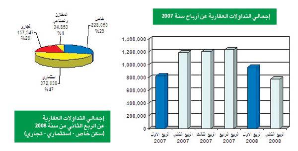 شهدت التداولات العقارية خلال الربع الثاني من عام 2008 حالة من الانخفاض الواضح تأثراً بمعطيات قانوني 8 و9 لسنة 2008 بخصوص منع الشركات المساهمة من بيع وشراء ورهن وحوالة حق العقار، الذي انعكس بدوره على منح الائتمان العقاري للأفراد الراغبين في السكن الخاص في البنوك الإسلامية.