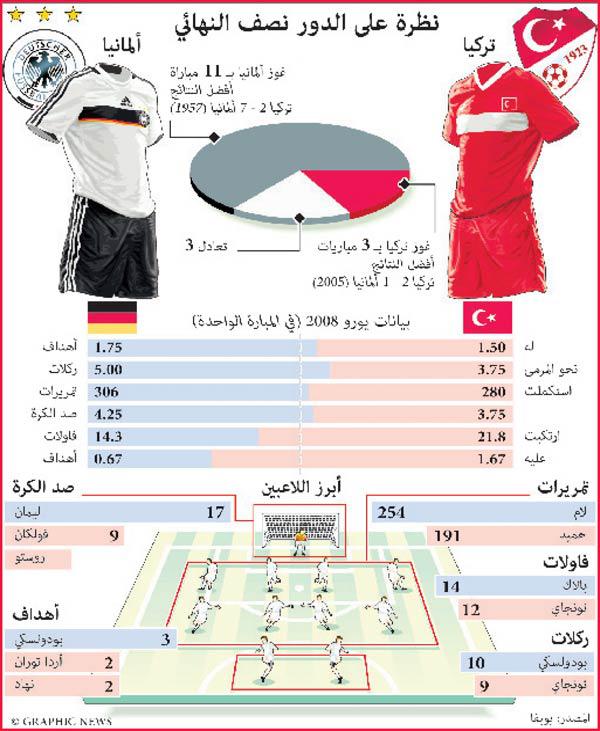 سيكون لمواجهة المانيا وتركيا في نصف نهائي كأس اوروبا 2008 اليوم في مدينة بال السويسرية، نكهة خاصة للجالية التركية الضخمة التي تعيش في المانيا، والتي ستؤازر بلاد اجدادها، آملة ان يتأهل الاتراك الى اول نهائي بطولة كبيرة في تاريخهم.وفي ما يلي لائحة في ابرز الحقائق والارقام عن الجالية التركية في المانيا:• يعيش 1.74 مليون نسمة من حاملي الجنسية التركية من أصل 6.75 ملايين اجنبي على الاراضي الالمانية، وفقا لاحصاء قام به المكتب الالماني للاحصاءات نهاية عام 2006.• هناك 415 الف مواطن الماني من اصول تركية.• %26.9 من المهاجرين الاتراك يعيشون في المانيا منذ 30 عاما او اكثر، و%53.1 بين 10 و30 عاما، و%19.9 منذ اقل من عشرة اعوام.• وصل المهاجرون الاتراك الى المانيا مطلع الستينيات من القرن الماضي للعمل كضيوف «غاستاربايتر»، وكان عددهم قليلا عام 1961، حيث بلغ 6.800 نسمة فقط، ليتضاعف بعد 20 عاما ويصبح 1.54 مليون.• %53 من الجالية التركية هم من الذكور و%47 من الاناث.• تعتبر برلين المركز الاكبر للجالية التركية، اذ تضم 120 الف تركي، ويتمركز ابناء الاناضول في شمال مقاطعة وستفاليا (627 الف نسمة)، خصوصا في المناطق الصناعية التي تتعدد فيها المناجم في حزام اقليم الرور (253 الف نسمة). ويشكل الاتراك %11.7 من قاطني مدينة دويسبورغ، وهو ما يعادل %60 من كامل عدد الاجانب الموجودين في المدينة.• يعيش في المانيا نحو 540 الف كردي، تسعون في المئة منهم قدموا من تركيا، والباقون قدموا من العراق وايران وسورية. ويقدر عدد الاكراد الذين طلبوا اللجوء السياسي بين 30 و40 الف نسمة.• %98 من الاتراك الذين يعيشون في المانيا هم من الطائفة السنية.• يتكون المجتمع التركي داخل المانيا من 47 اثنية ومجموعة دينية مختلفة. (أ ف ب)المنتخب التركي بالنكهة الألمانيةستكون المشاعر مختلطة في مباراة المنتخبين التركي والألماني، وذلك بسبب اللاعبين الأتراك الذين يقطنون ويلعبون في ألمانيا، ويشاركون حاليا مع المنتخب التركي.ستحمل المواجهة بين المانيا وتركيا نكهة خاصة بالنسبة الى اولئك اللاعبين الاتراك الذين نشأوا في المانيا وتعلموا اصول الكرة هناك وعرفوا الاضواء مع اندية «البوندسليغا» من دون ان يدافعوا ولو مرة واحدة في مسيرتهم عن الوان احد الاندية التركية، والامثلة كثيرة في هذا السياق ولعل ابرزها صانع الالعاب يلديراي باشتورك والمهاجم الشاب نوري شاهين (يغيبان عن البطولة) اللذين فضلا اللعب مع بلادهما الام على حساب «المانشافت»، وكذلك فعل لاعب بايرن ميونيخ بطل المانيا حميد التينتوب وشقيقه خليل.لكن هذا الامر لم يكن دائما قاعدة، إذ يذكر الجميع كيف تحول محمد شول الى نجم مطلق في بايرن والمنتخب الالماني في تسعينيات القرن الماضي، حيث قاده الى اللقب القاري عام 1996 في انكلترا. ولا شك في ان المشاعر ستكون مختلطة بالنسبة الى لاعب مثل حميد التينتوب في مباراة اليوم، والامر عينه يمكن ان ينطبق على الكثير من ابناء جلدته الذين يعيشون في المانيا ويتخطى عددهم مليوني نسمة.ولفتت خطوة الاتحاد الالماني لكرة القدم أخيرا عبر حملة اعلانية تتحدث عن اختلاط الثقافات المختلفة عبر اللعبة الشعبية الاولى في العالم، وقد صور شريط عرض على شاشات التلفزة يظهر لاعبين غانيين وروس وكروات يدافعون عن الوان المانيا على صعيد الرجال والنساء وحتى منتخبات الناشئين.وبالطبع لم ينس الاتحاد الالماني الجالية البولندية التي قدمت الى المنتخب الحالي ثلاثة لاعبين هم: لوكاس بودولسكي وميروسلاف كلوزه وبيوتر تروشوفسكي.ولم يكن شول التركي الاصل الوحيد الذي لعب لالمانيا، إذ استدعي مصطفى دوغان لمباراتين عام 1999، وظهر حديثا بالقميص الابيض والاسود ظهير ايسر هرتا برلين مالك فتحي.وما لا يعرفه كثيرون ان الاتحاد الالماني في سباق دائم مع نظيره التركي على استقطاب المواهب، وقد اسس الثاني مكتبا له في مدينة كولن الصناعية، حيث يوجد عدد كبير من ابناء الجالية الذين يعيشون هناك، لمراقبة اللاعبين الصاعدين، وقد اضطلع بهذا الدور بشكل اساسي 
